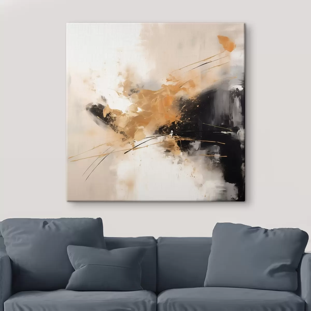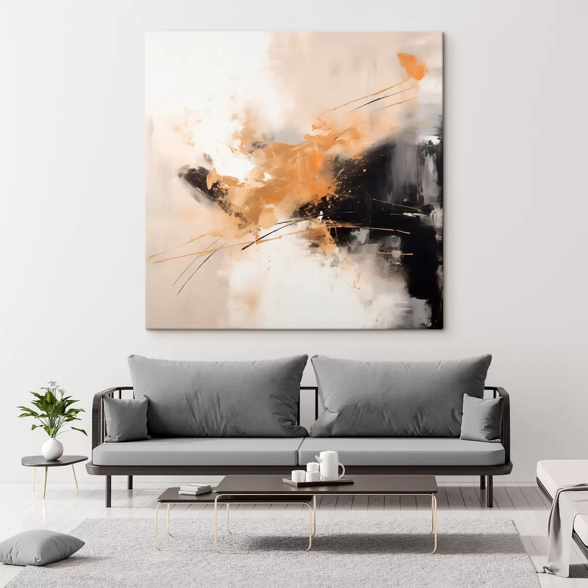 Wandbilder Orangefarbene und schwarze Striche, moderne Abstraktion s46327