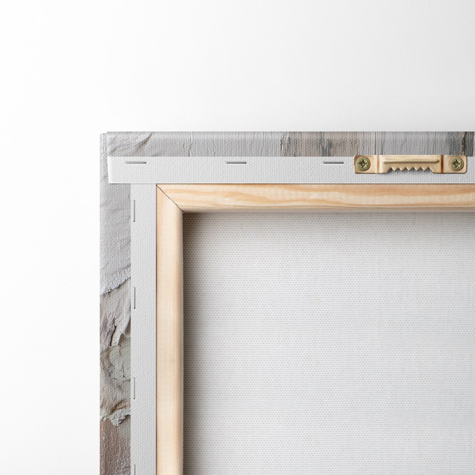 Sie können das Bild an Schrauben aufhängen. Dazu legen wir unseren Bildern Halterungen bei, mit denen Sie das Bild bequem aufhängen können.