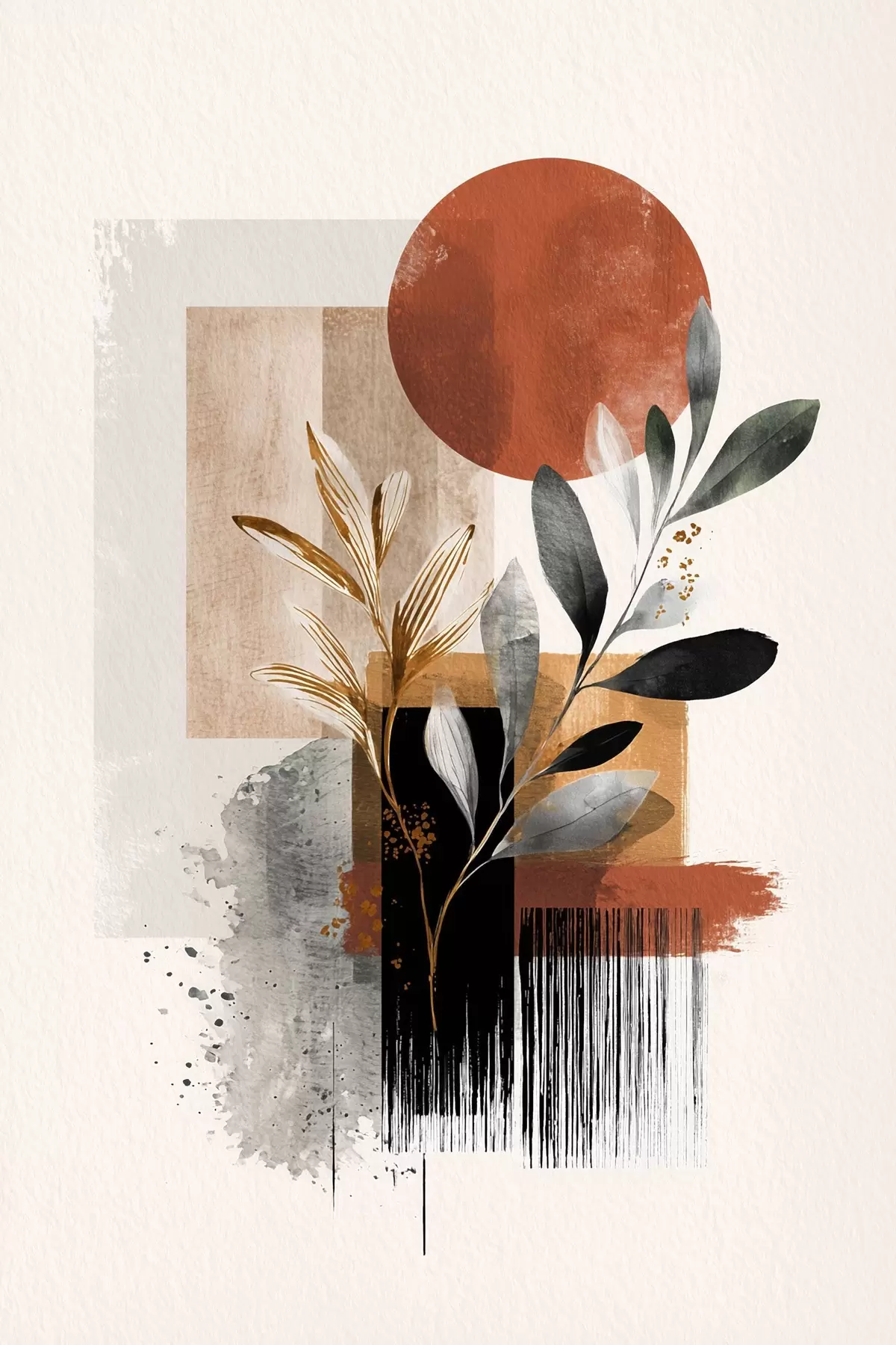 Wandbilder Geometrie und Blätter Abstraktion s46388