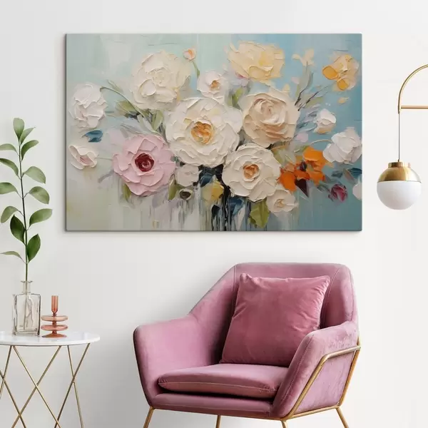 Drei Materialtypen stehen zur Verfügung: Economic Canvas - ein dichtes und haltbares Material für den Digitaldruck, identisch mit Malerleinwand, wasserfeste Oberfläche, realistische Wiedergabe von Details, mittelkörniges Material. Premium Canvas - die Textur ähnelt der einer Malerleinwand (verwobene kleine Fäden). Weiche, detaillierte Wiedergabe des Bildes auf einer matten Oberfläche. Eco-Premium - hochwertiges Gewebe aus 100% Baumwolle. Dank der natürlichen Baumwollfasern ist das Material langlebig und verschleißfest. Hervorragende Farbwiedergabe und Detailtreue.