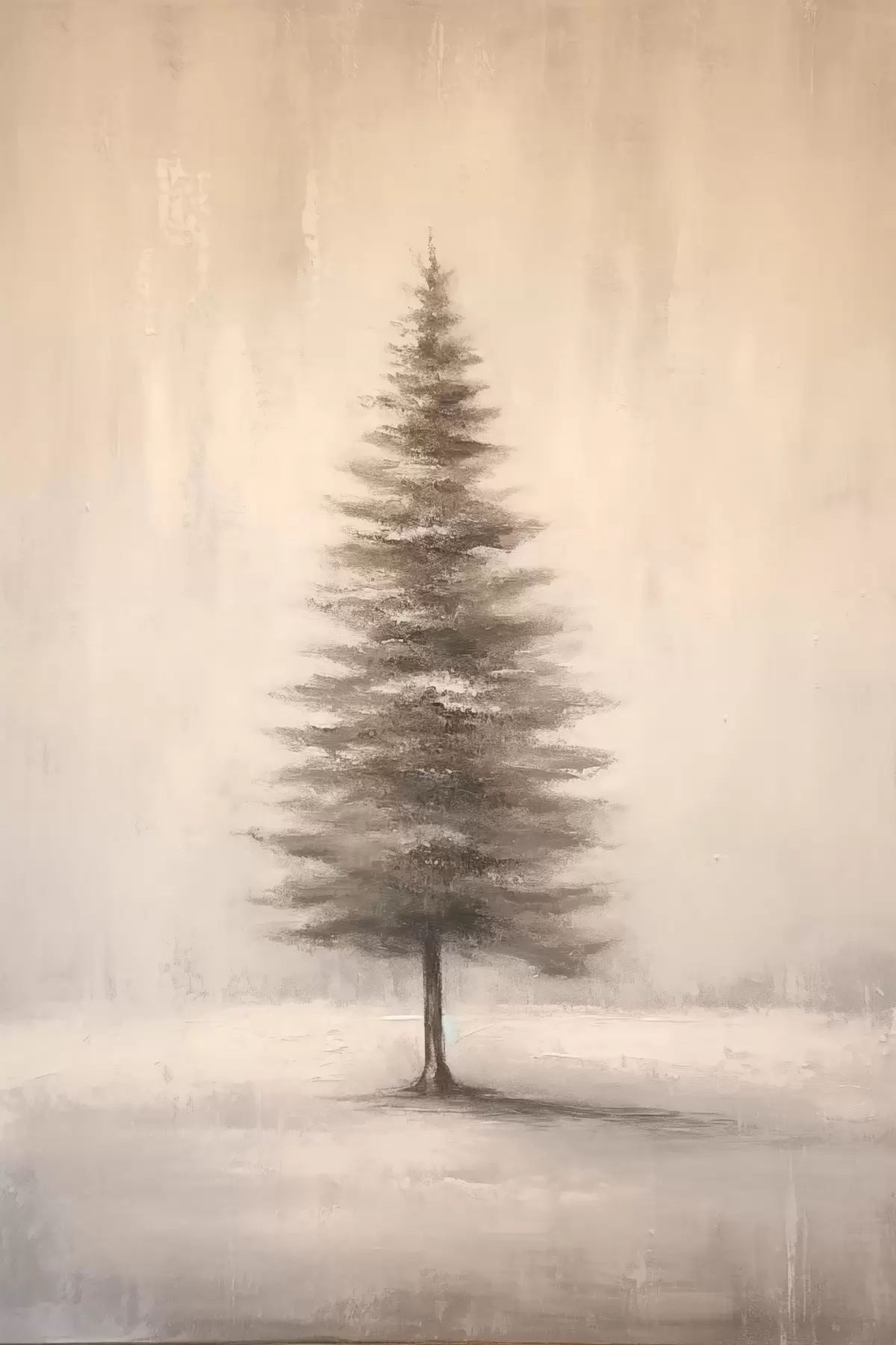Wandbilder Monochrome Tanne. Minimalistische Winterlandschaft Art. s46465