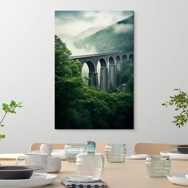 Wandbilder Steinviadukt über nebligem Waldtal Art. s46483