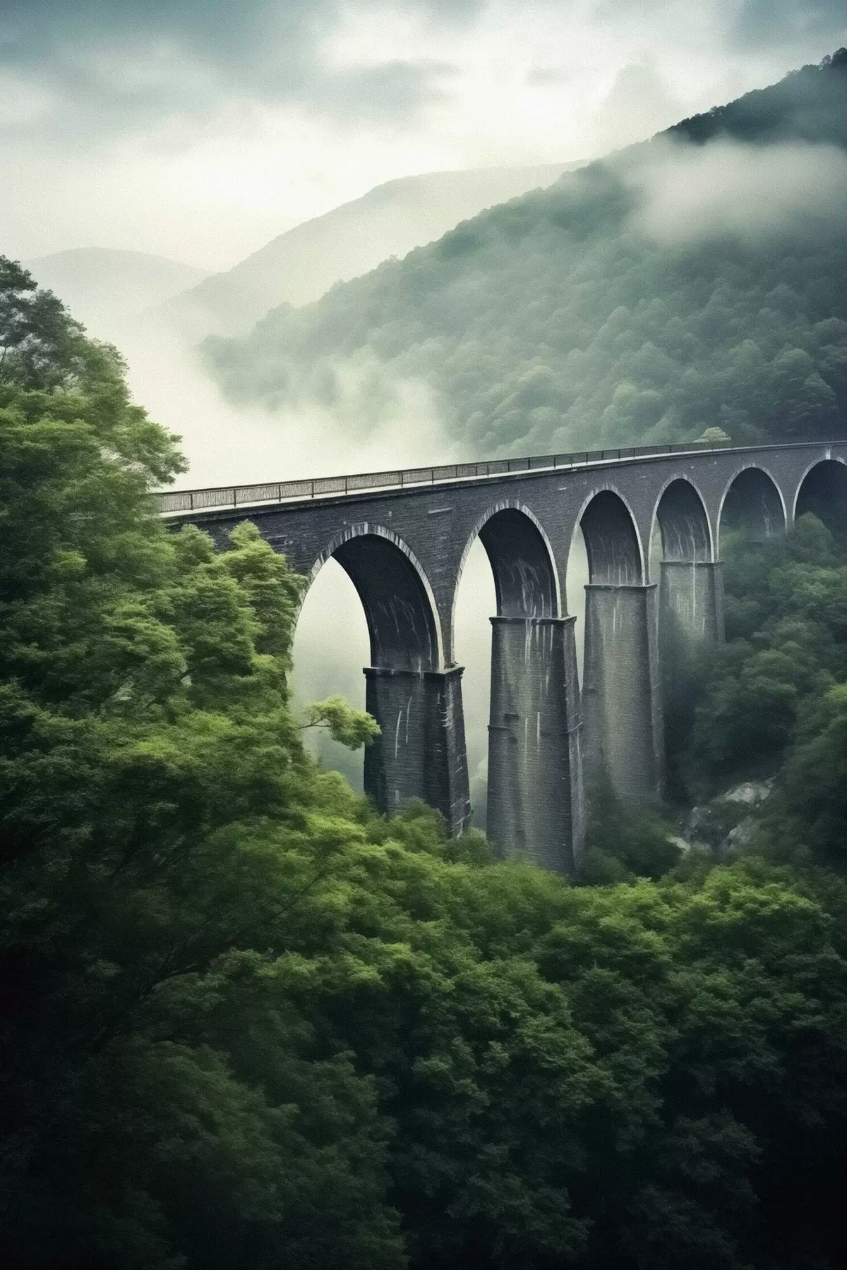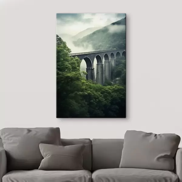 Wandbilder Steinviadukt über nebligem Waldtal Art. s46483