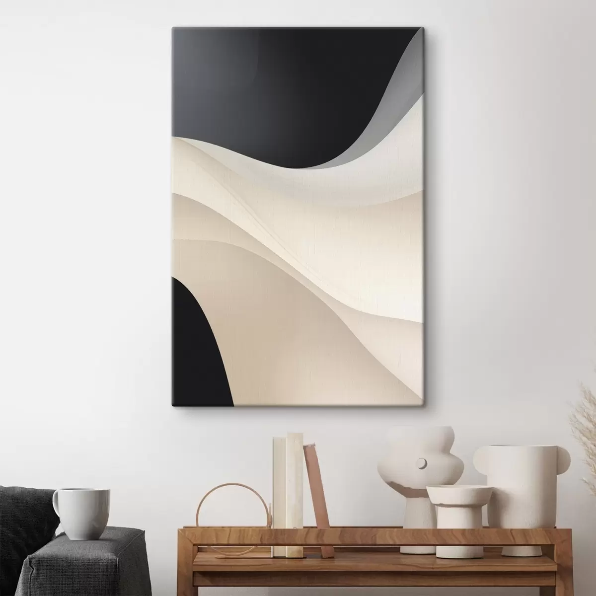 Wandbilder Geschichtete, fließende Kurven in Schwarz, Creme und Taupe Art. s46492