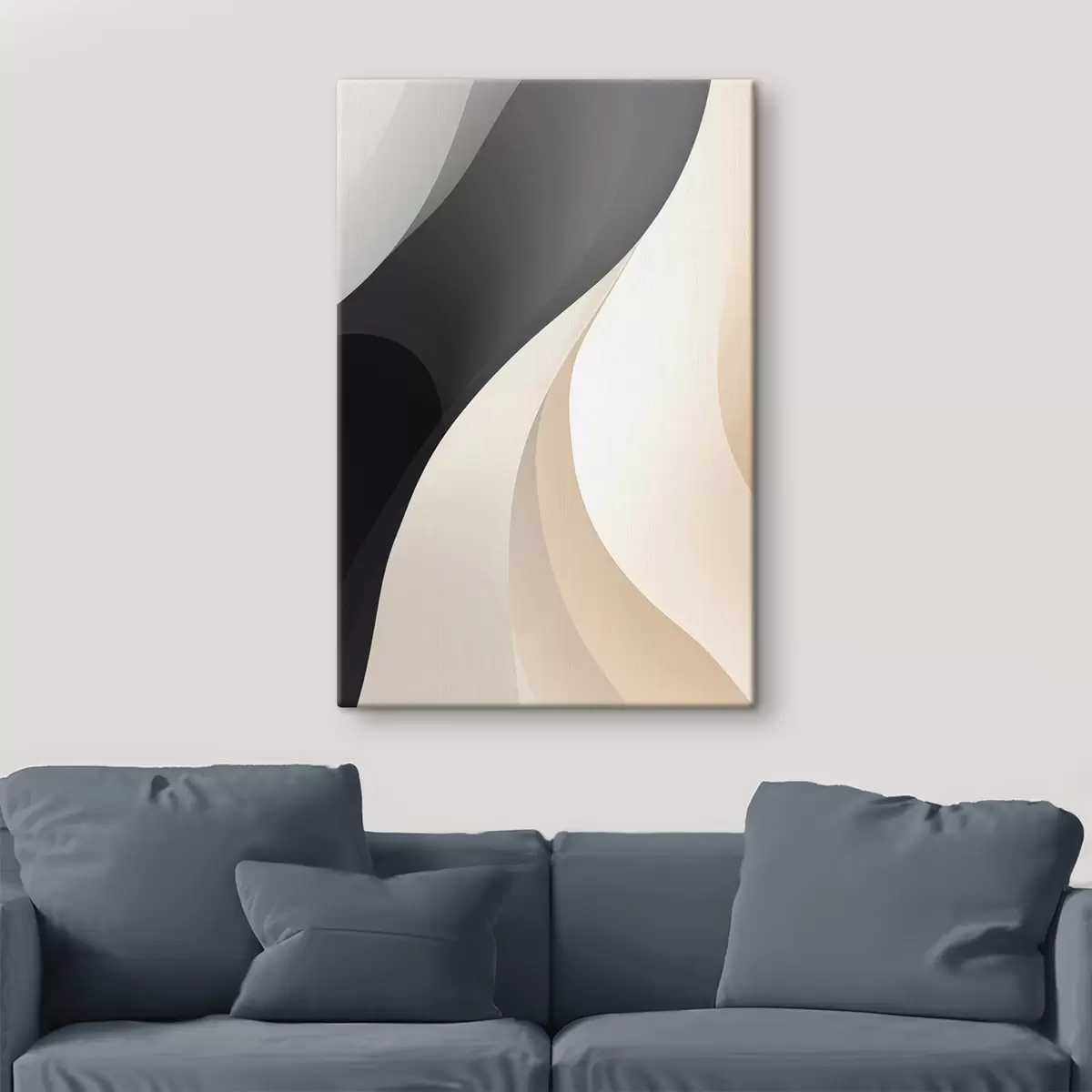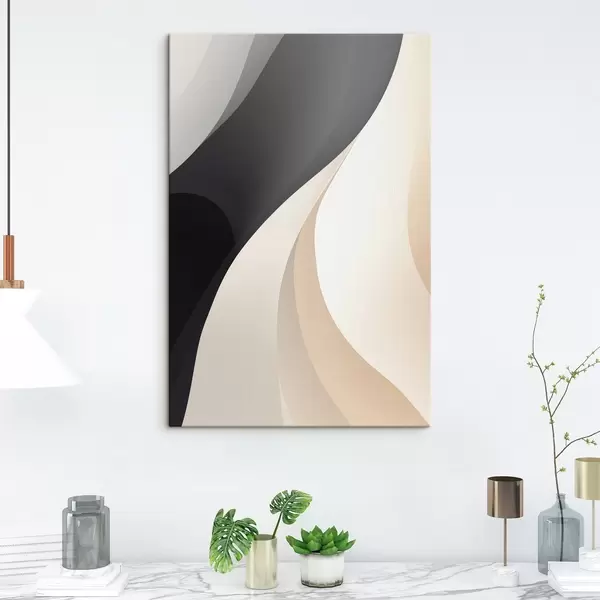 Wandbilder Elegante, sich überlappende Kurven in Anthrazit, Elfenbein und Sand Art. s46493