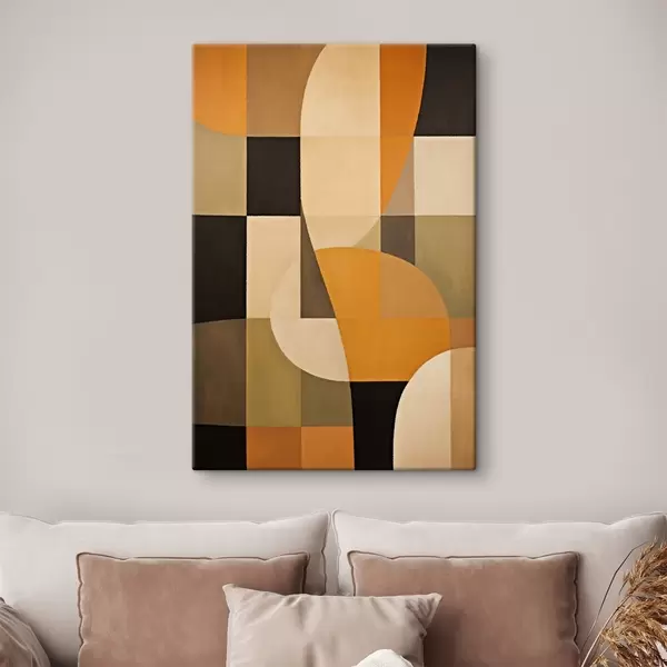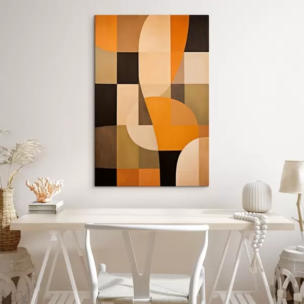 Wandbilder Patchwork aus Rechtecken mit einem sanften orangefarbenen Bogen Art. s46534