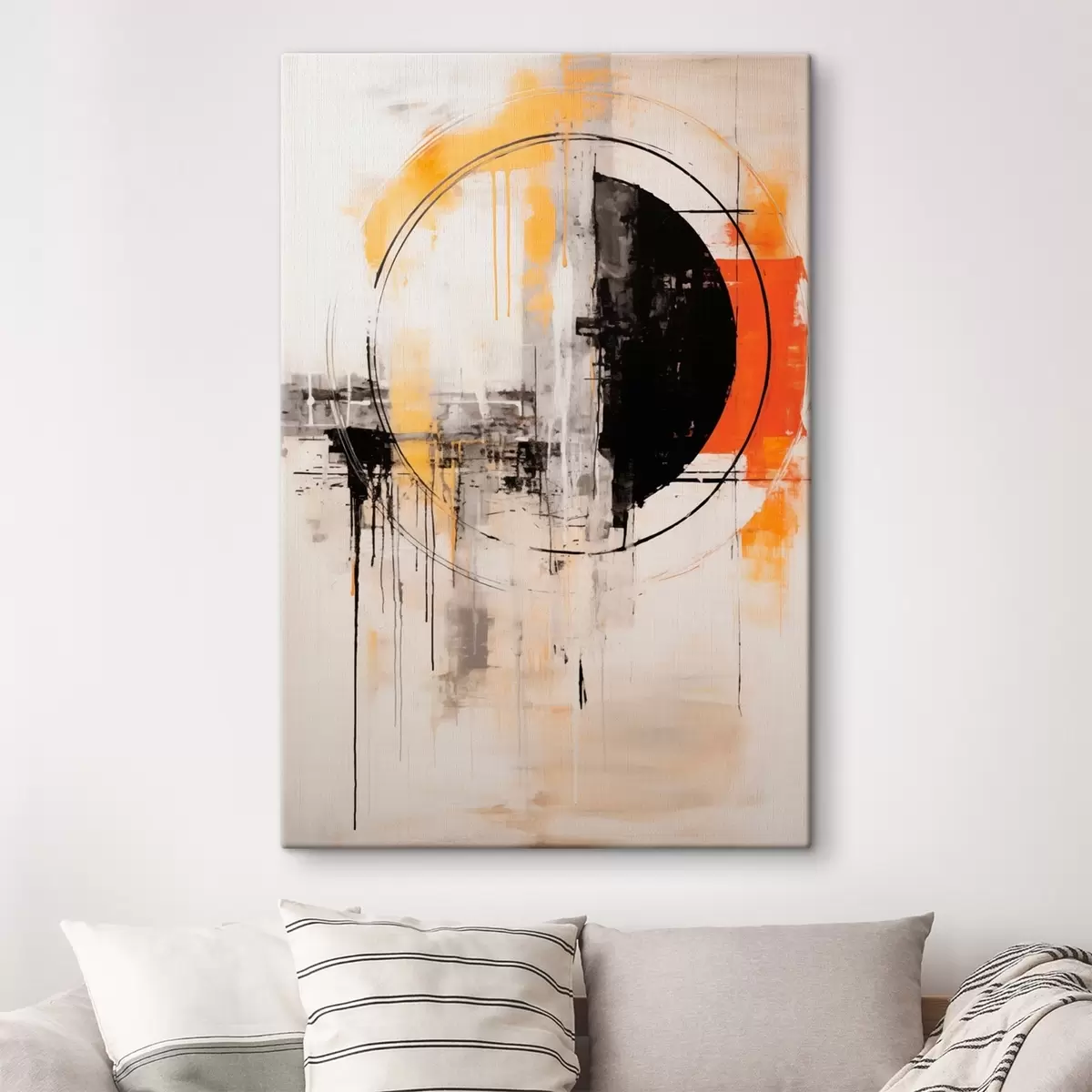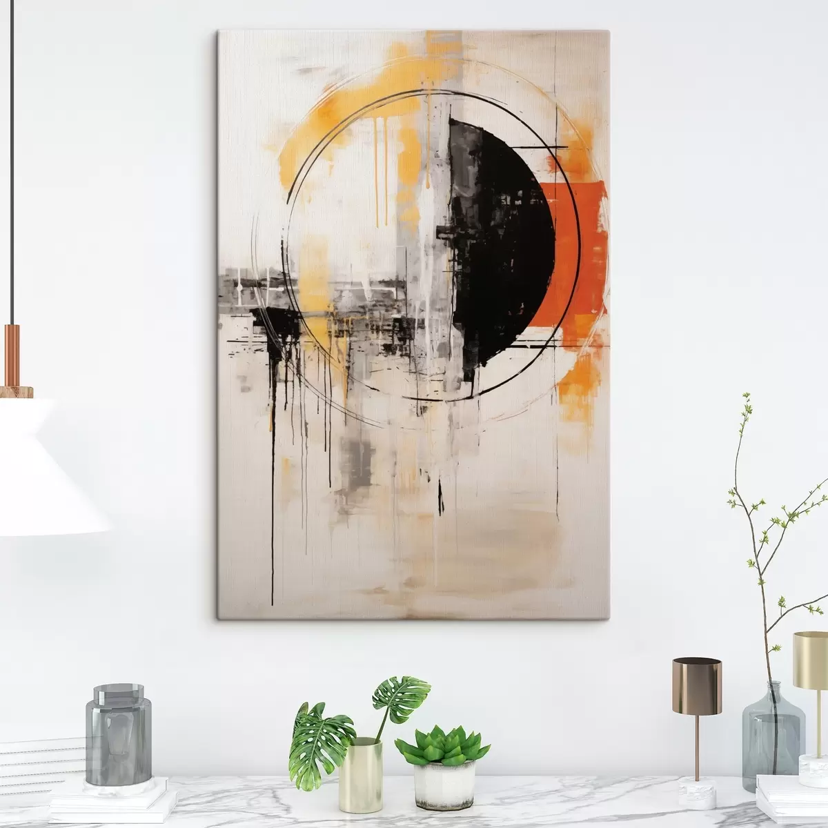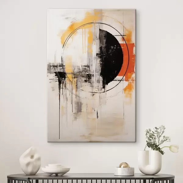 Wandbilder Einfarbiger orangefarbener Kreis mit strukturierten Tropfen Art. s46536