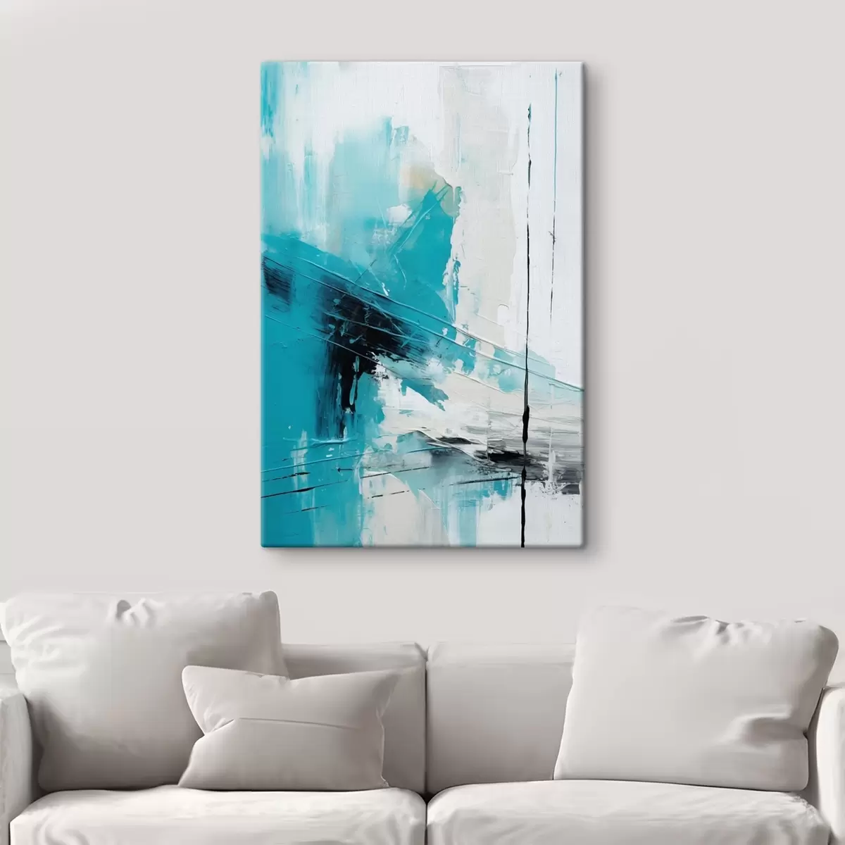 Wandbilder Türkisfarbene Striche auf Weiß mit einem schwarzen Strich s46545