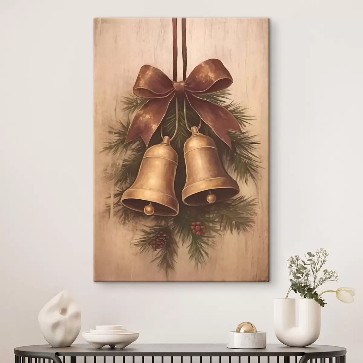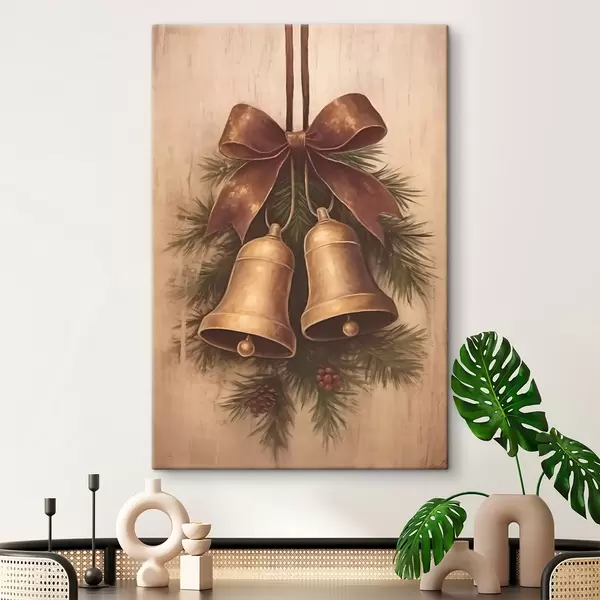 Wandbilder Vintage-Weihnachtsdekoration mit zwei Glocken und einer Schleife Art. s46626