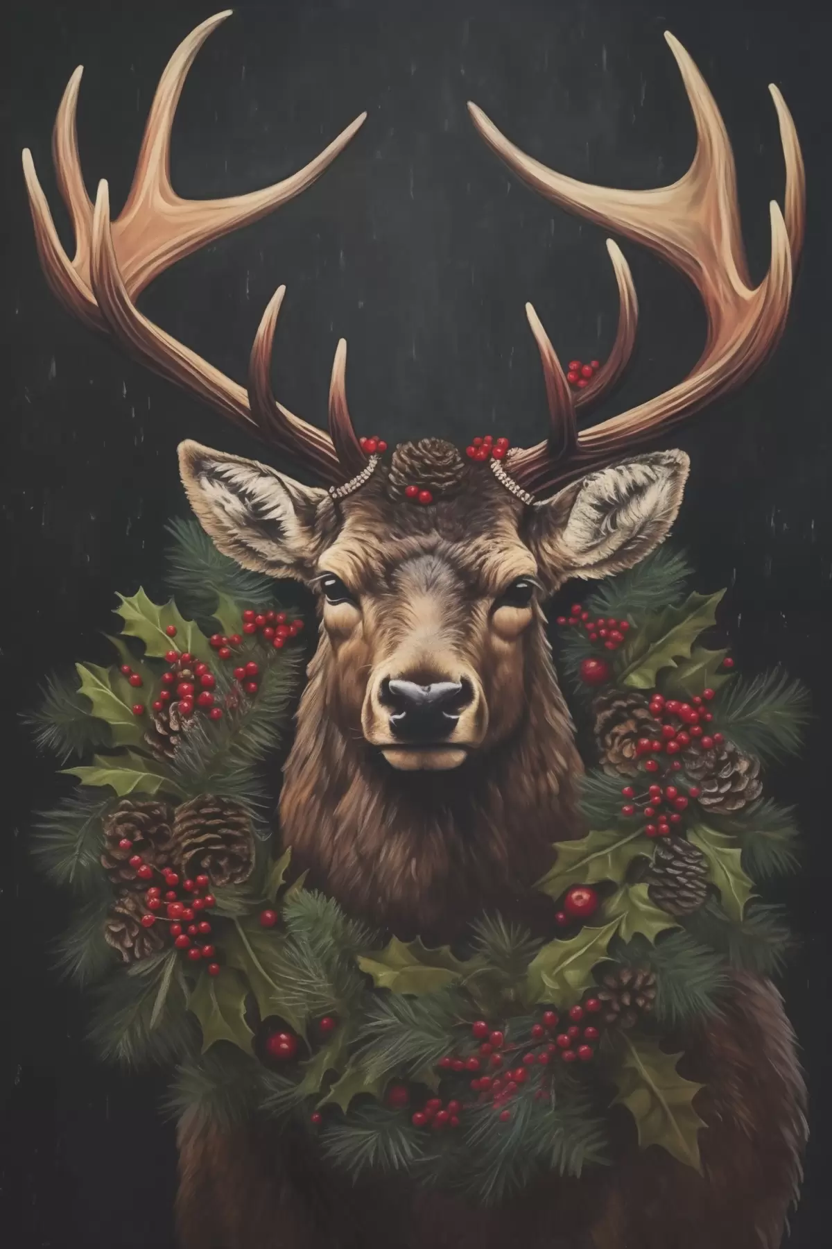 Wandbilder Porträt eines Hirsches mit Weihnachtskranz Art. s46628