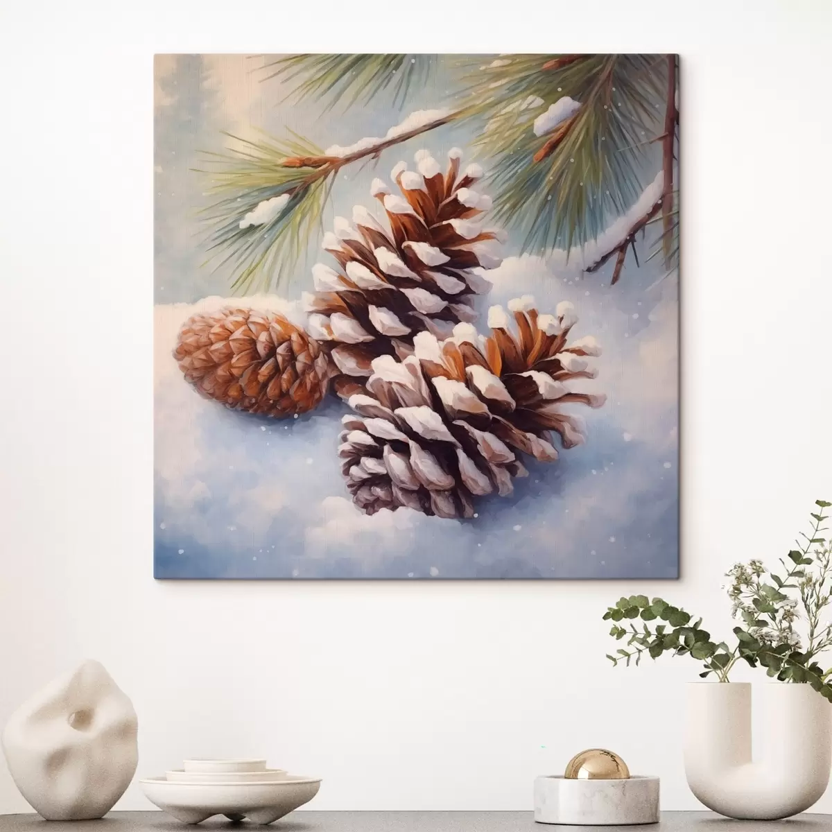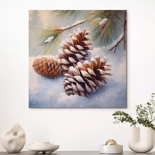 Wandbilder Schneebedeckte Tannenzapfen und Äste Art. s46631