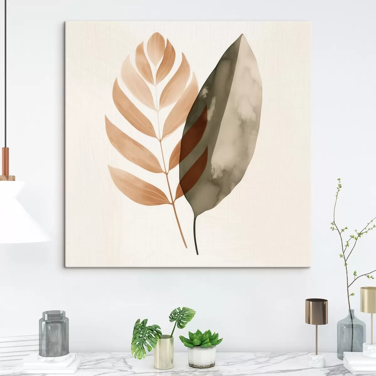 Wandbilder Ein Duo aus Blattsilhouetten im abstrakten Aquarellstil s46645