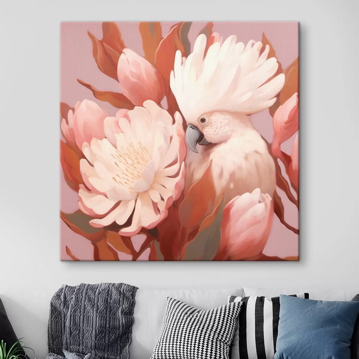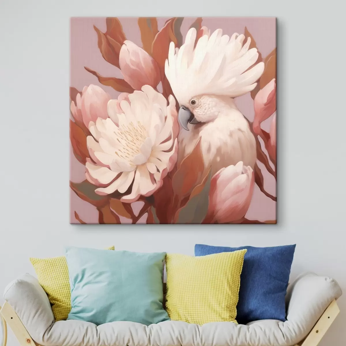 Wandbilder Abstrakte künstlerische Darstellung eines Vogels in einer Blumenkomposition s46667
