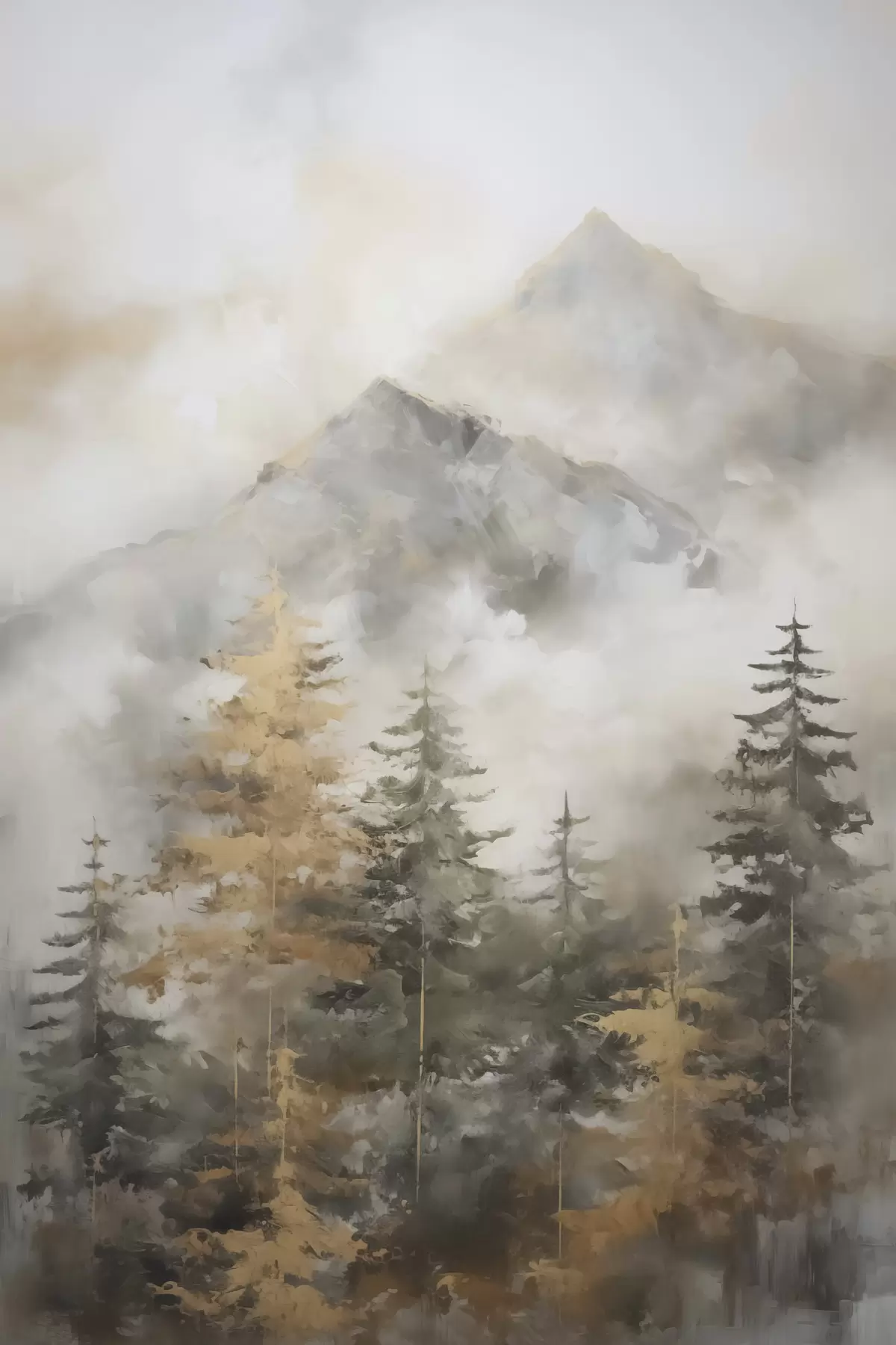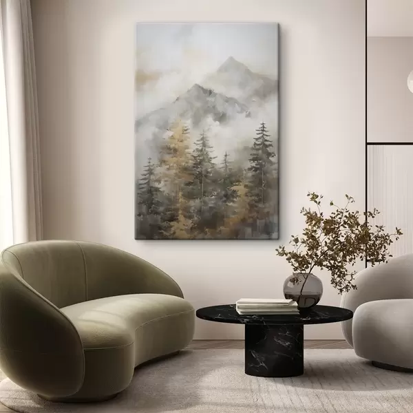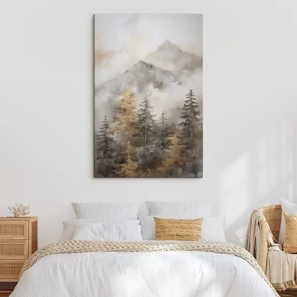 Wandbilder Wald vor dem Hintergrund von Bergen, Imitation einer Malerei Art. s46670