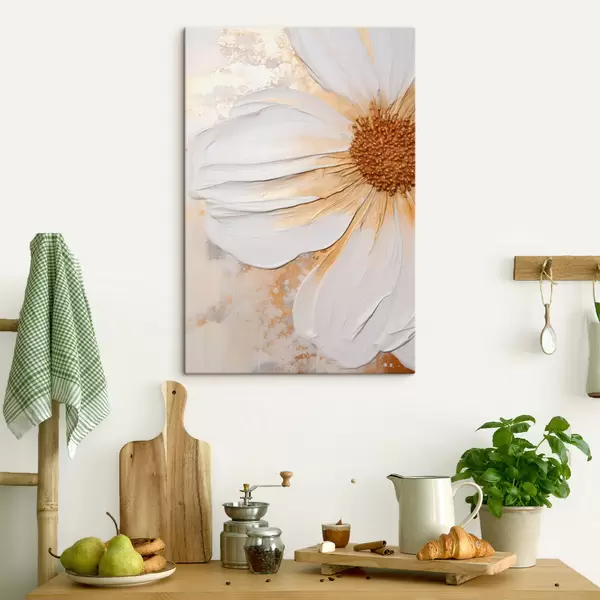 Wandbilder Eine weiße Blume mit zarten Blütenblättern, strukturiertem abstrakten Hintergrund, elegant, dekorative Kunst s46692