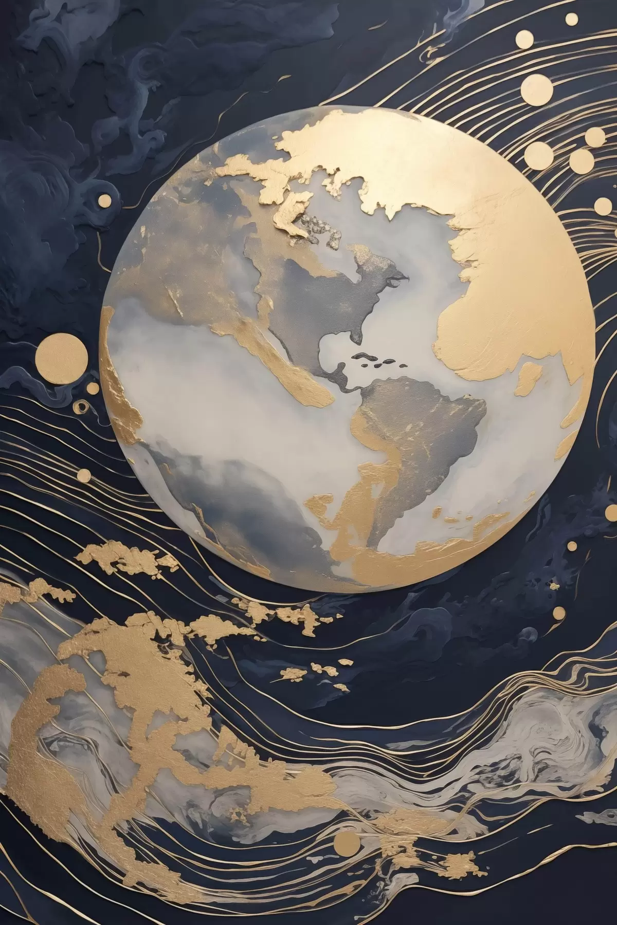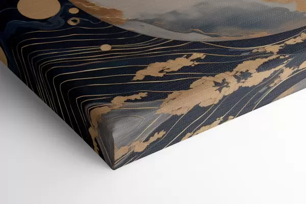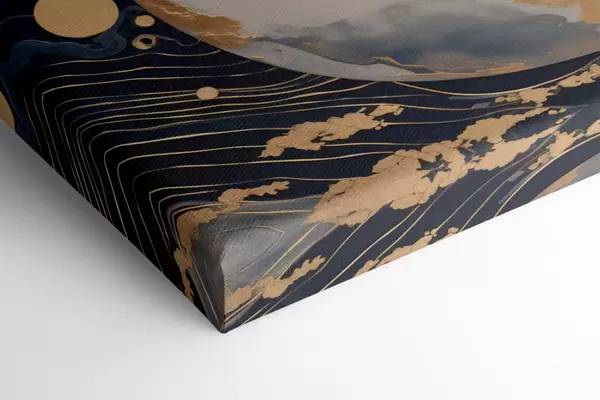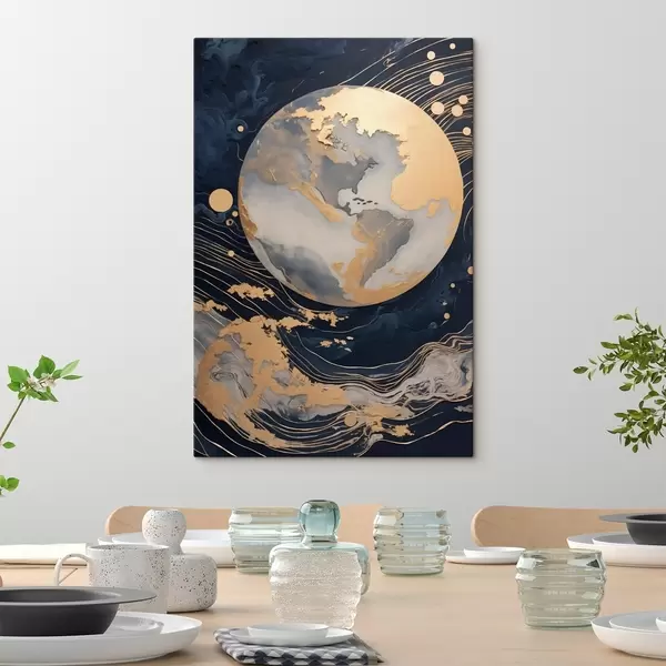 Wandbilder Strukturierter dekorativer Planet mit gelben Linien im Hintergrund, gelben Punkten im Hintergrund, dunklem Hintergrund Art. s46708