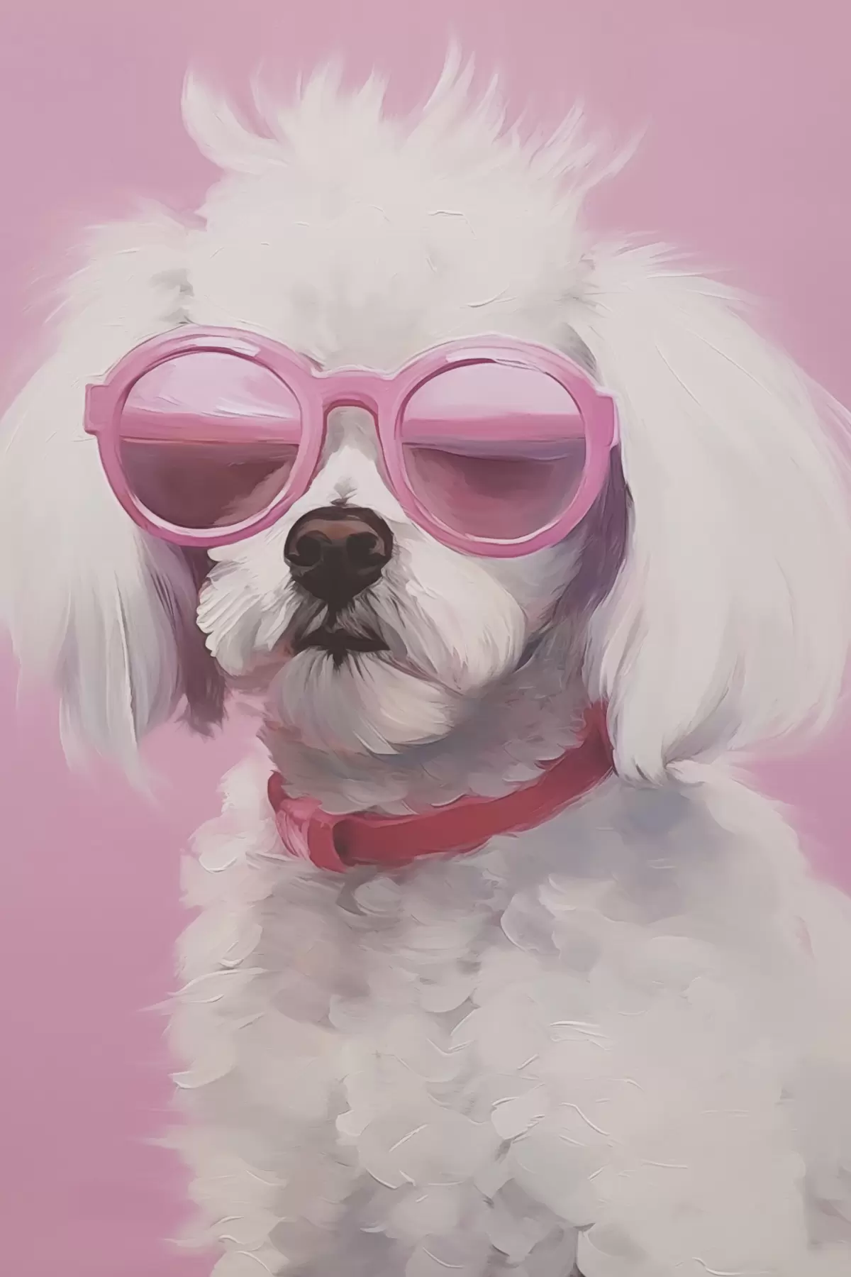 Wandbilder Ein kleiner Hund mit Brille ist eine Nachahmung eines Gemäldes. Art. s46722