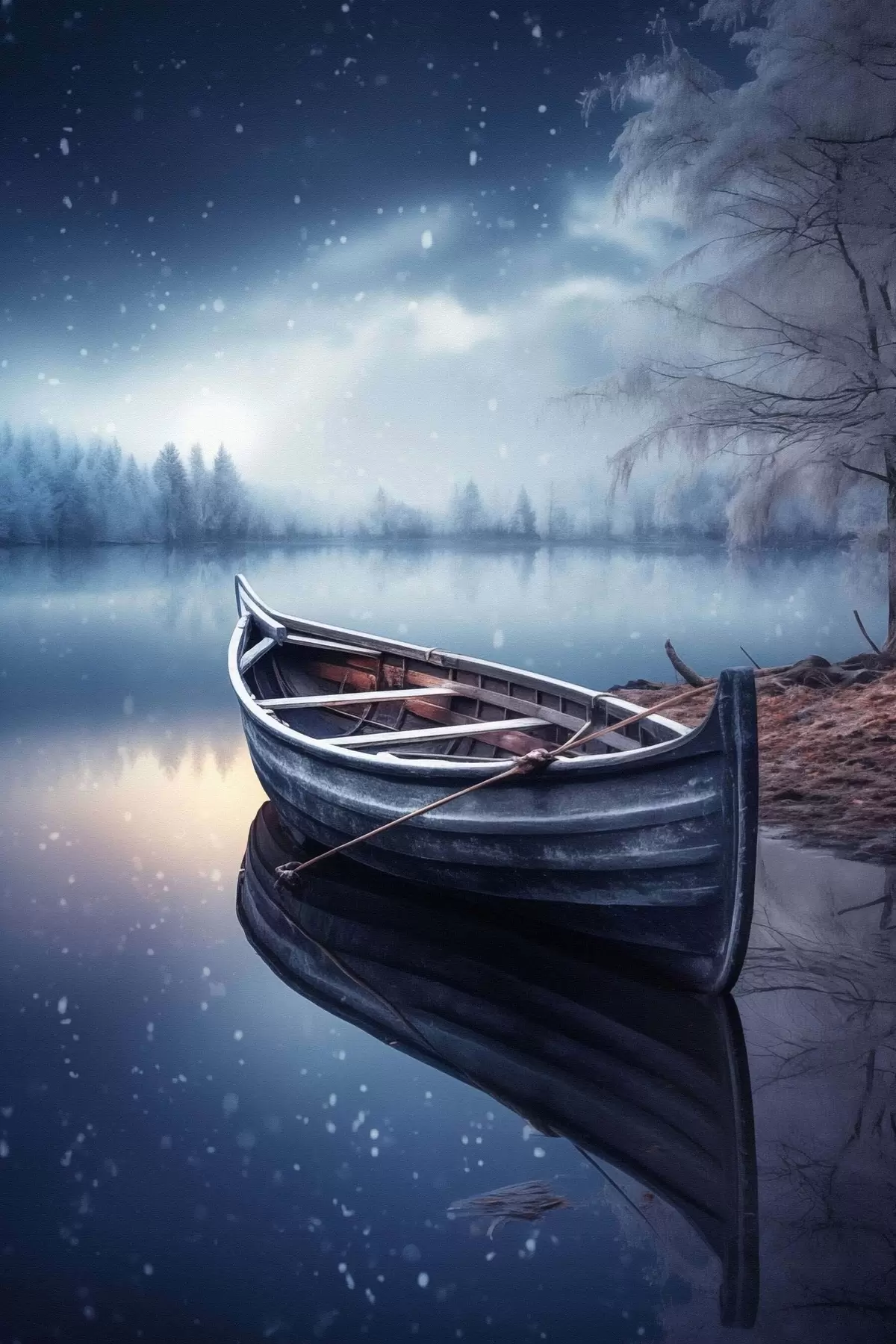 Wandbilder Leeres Boot an einem winterlichen See Art. s46773