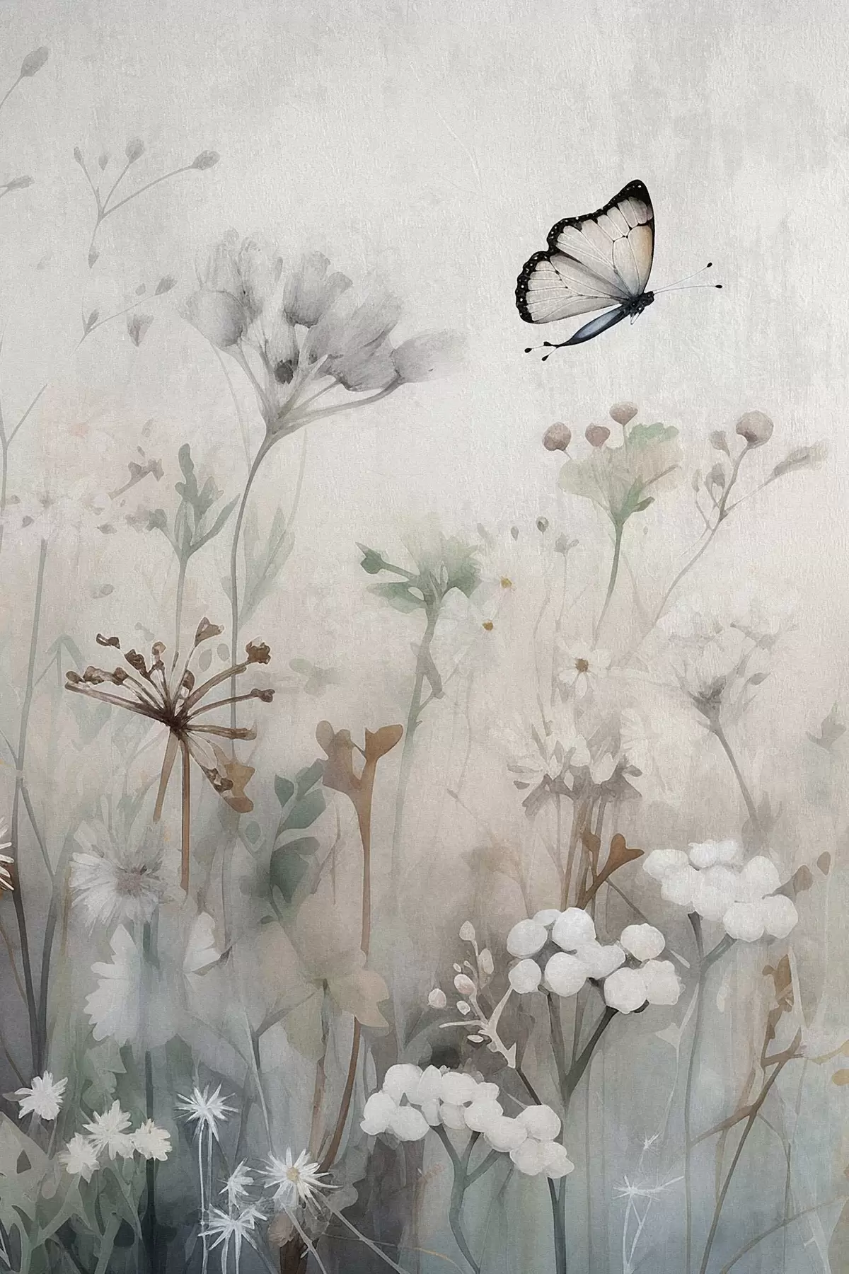 Wandbilder Schmetterling vor einem Hintergrund aus Wildblumen s46897
