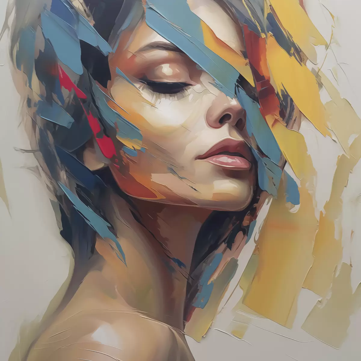 Wandbilder Abstrakte weibliche Porträtimitation einer Malerei s46918