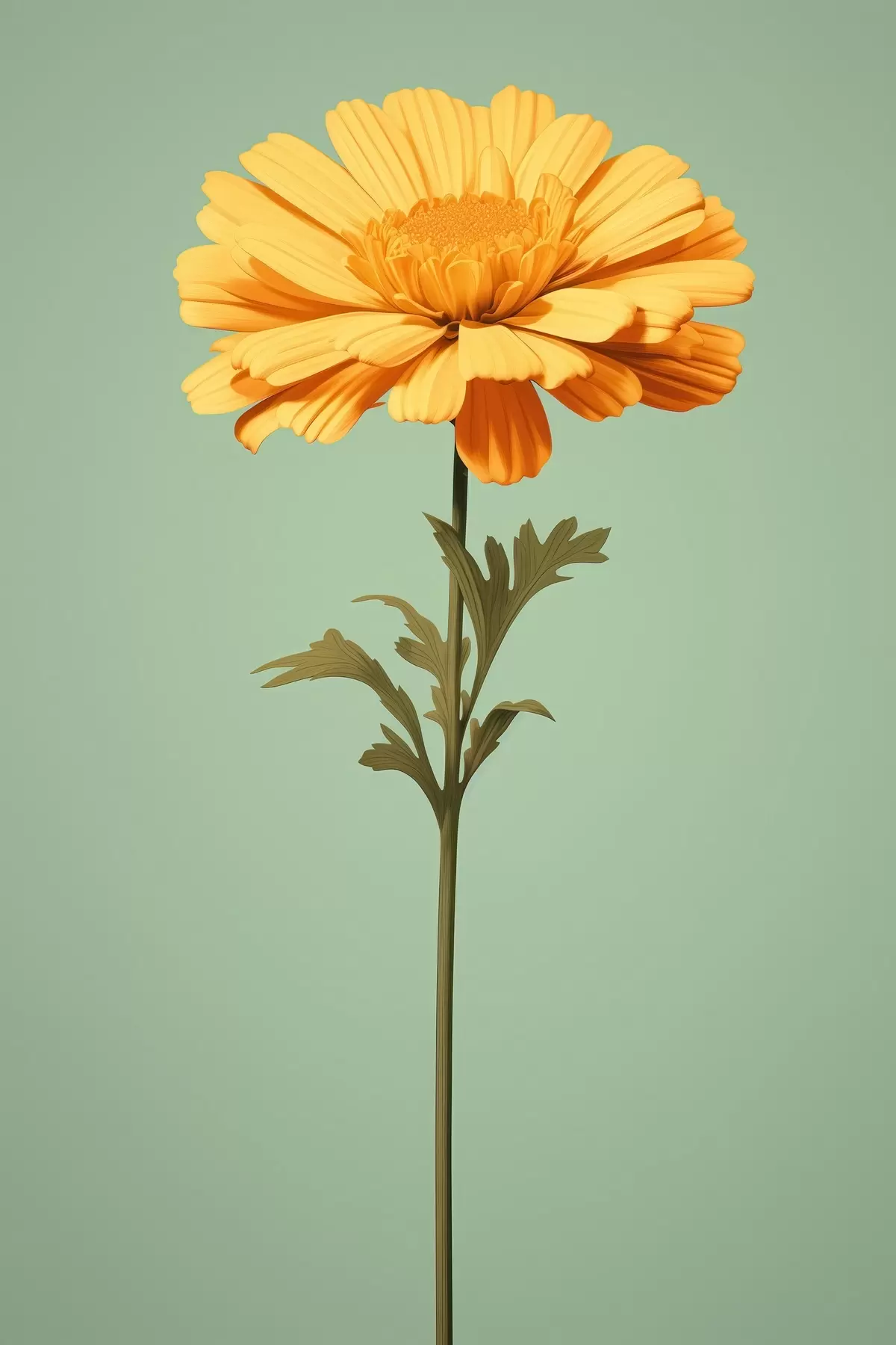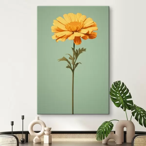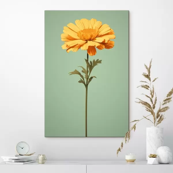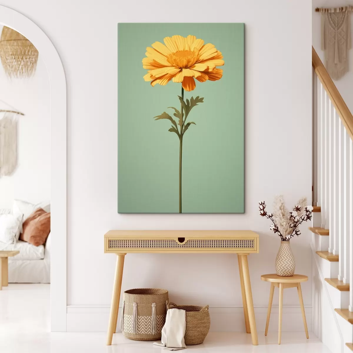 Wandbilder Gelbe Ringelblume auf mintfarbenem Hintergrund im minimalistischen Stil s46926