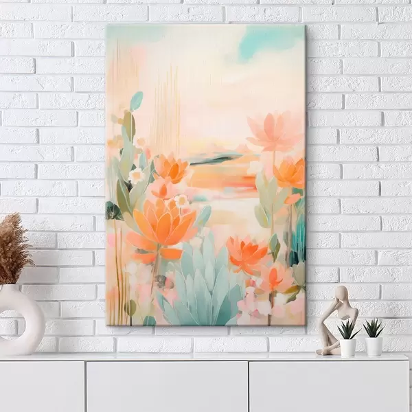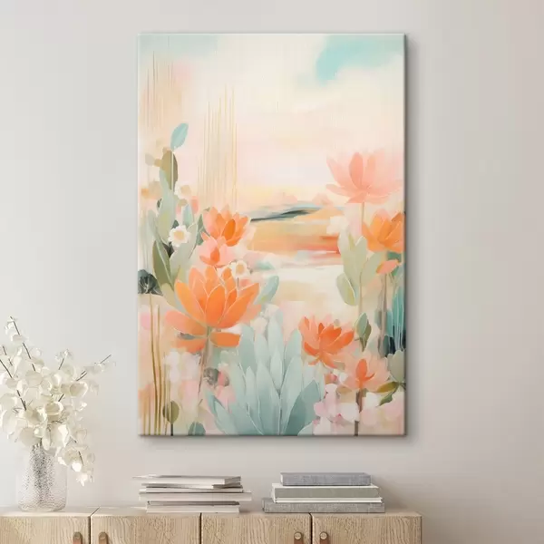 Wandbilder Blumenlandschaft in Rosa- und Blautönen in einem zeitgenössischen Malstil Art. s46931