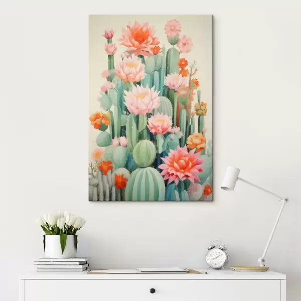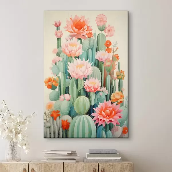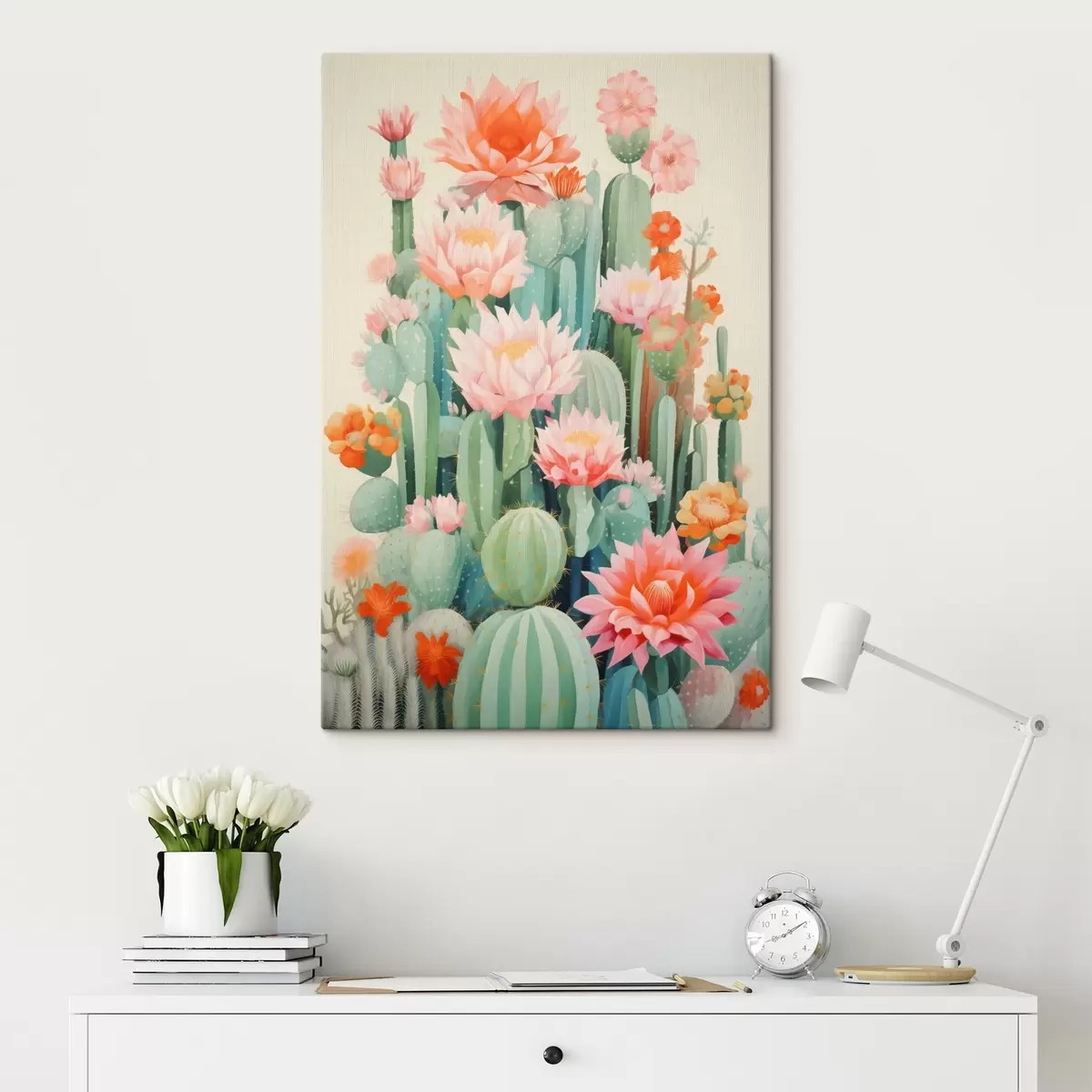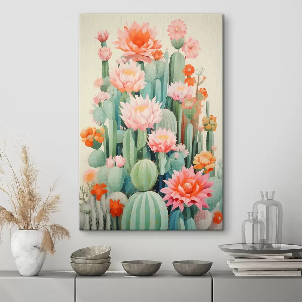 Wandbilder Blühende Kakteen mit rosa und orangefarbenen Blüten im Illustrationsstil s46934