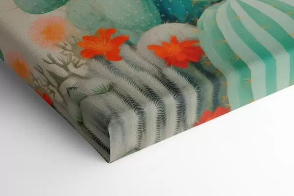 Wandbilder Blühende Kakteen mit rosa und orangefarbenen Blüten im Illustrationsstil s46934