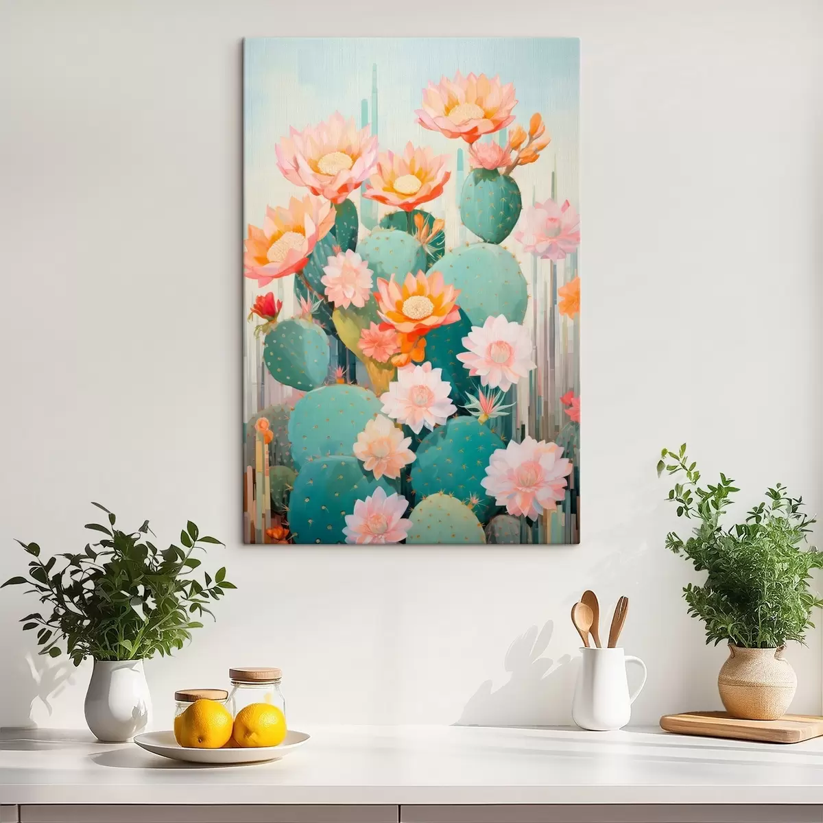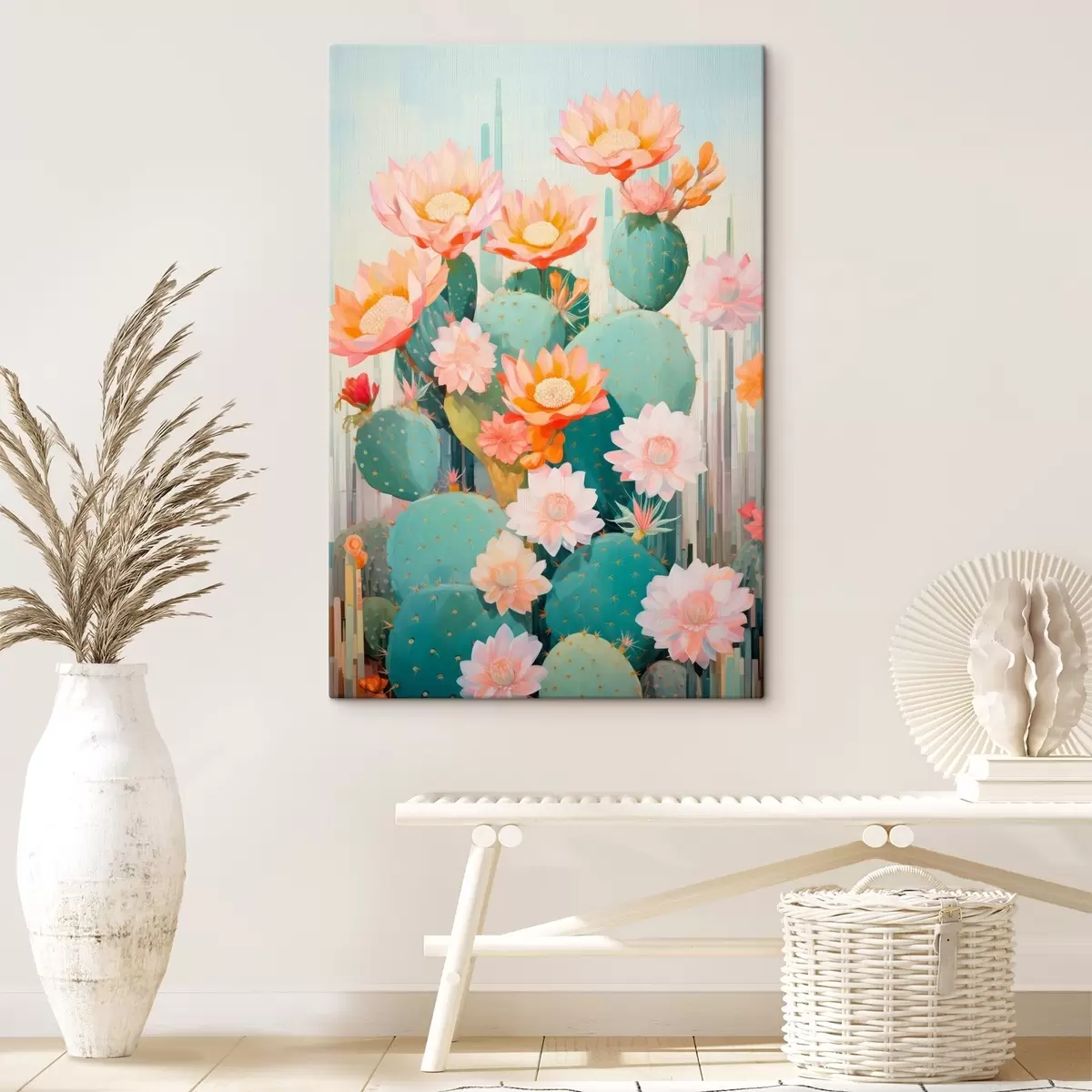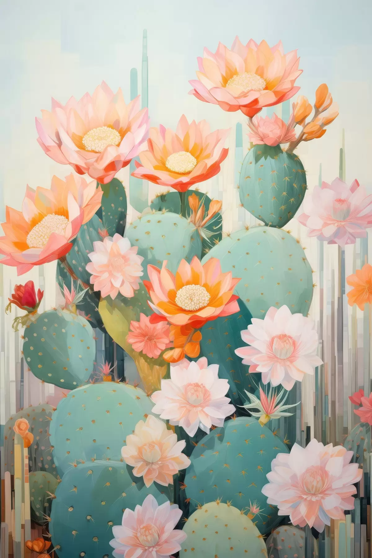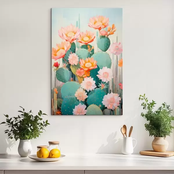 Wandbilder Kaktusblütengarten in sanften Pastelltönen im Illustrationsstil Art. s46935