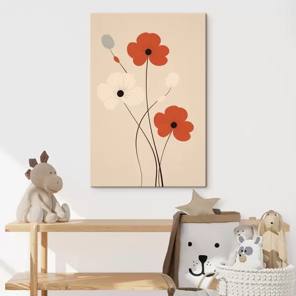 Wandbilder Abstrakte Komposition mit dünnen Stielen und einfachen Formen im minimalistischen Stil Art. s46943