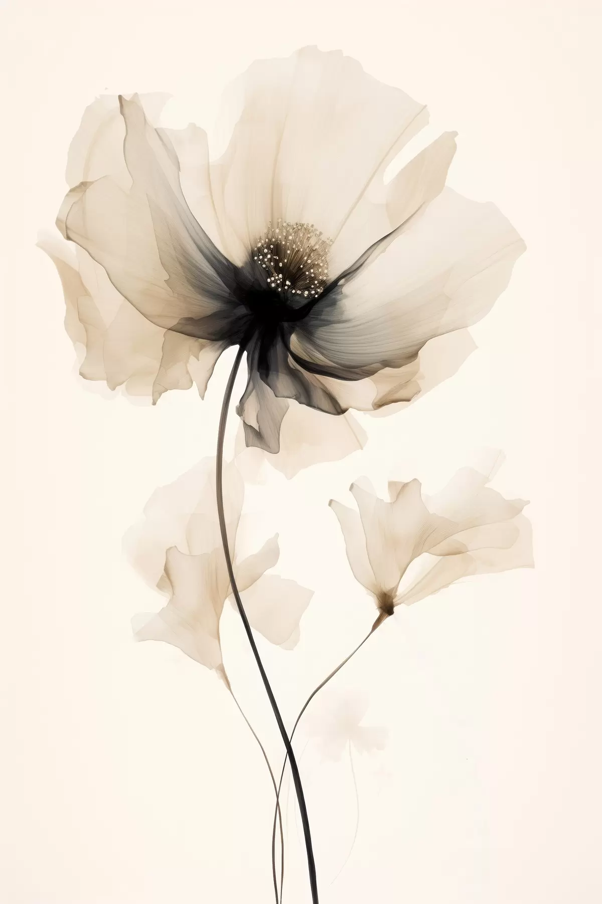 Wandbilder Zarte, halbtransparente Blume mit dunkler Mitte im minimalistischen Stil s46944