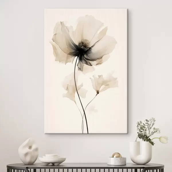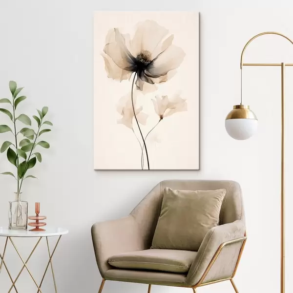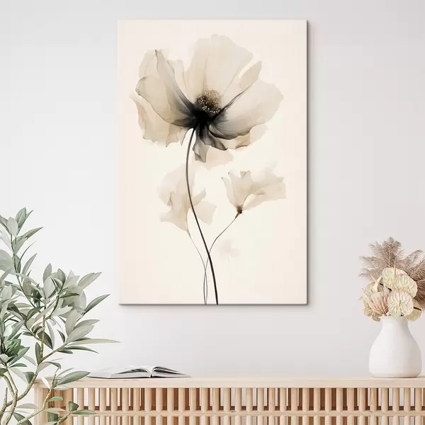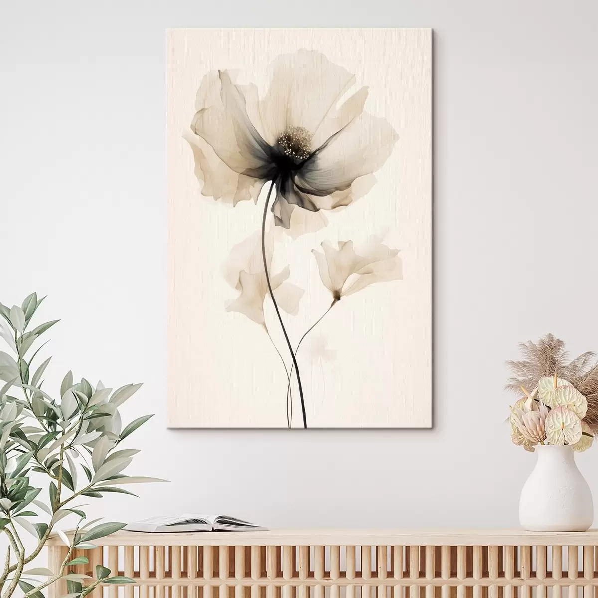 Wandbilder Zarte, halbtransparente Blume mit dunkler Mitte im minimalistischen Stil Art. s46944
