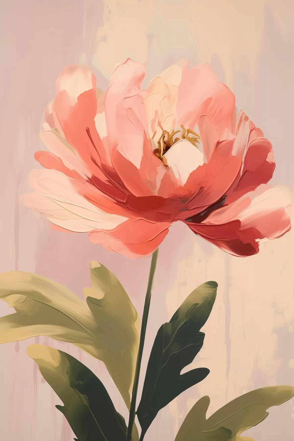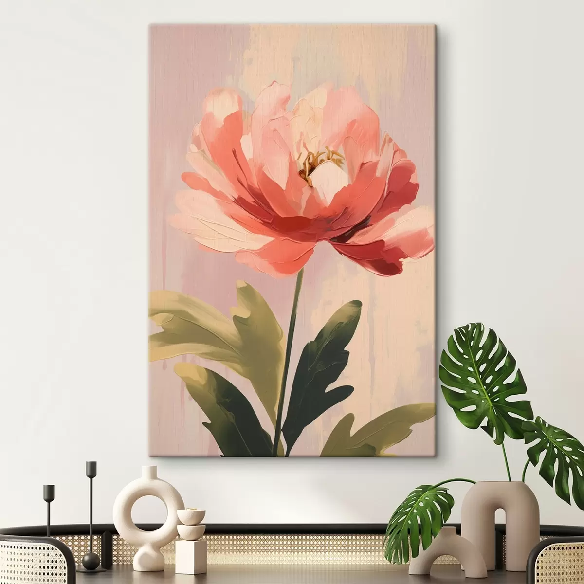 Wandbilder Korallenfarbene Pfingstrose auf pastellfarbenem Hintergrund im Stil moderner Kunstillustration s46949