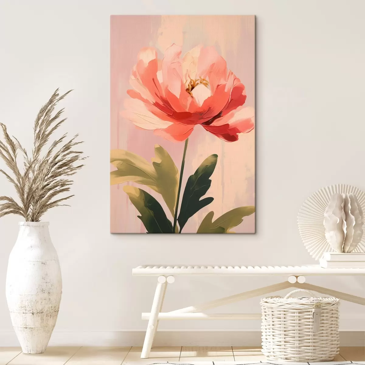 Wandbilder Korallenfarbene Pfingstrose auf pastellfarbenem Hintergrund im Stil moderner Kunstillustration Art. s46949