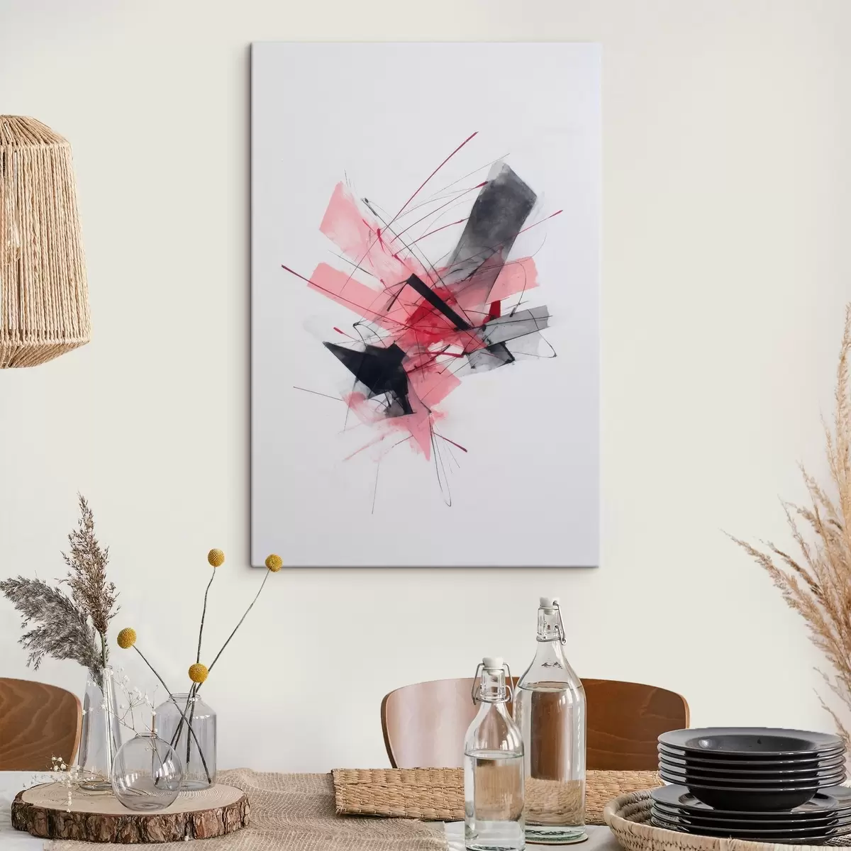 Wandbilder Abstraktes Bild mit rosa und schwarzen geometrischen Elementen Art. s46950