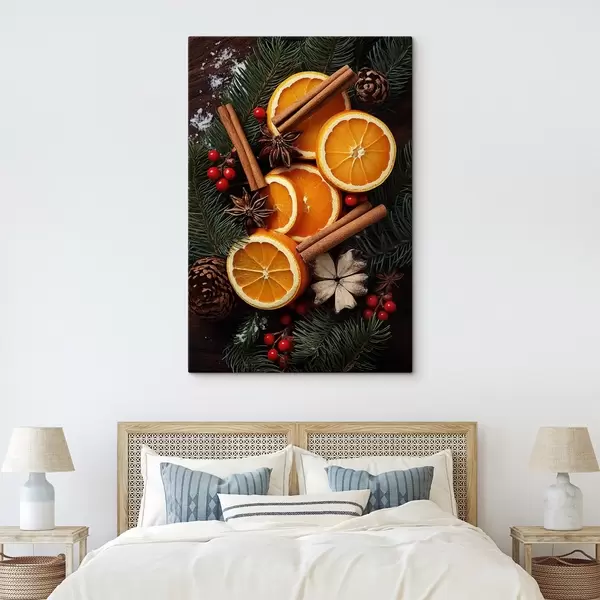 Wandbilder Zeichnung von Früchten, Orange und Zimt s46986