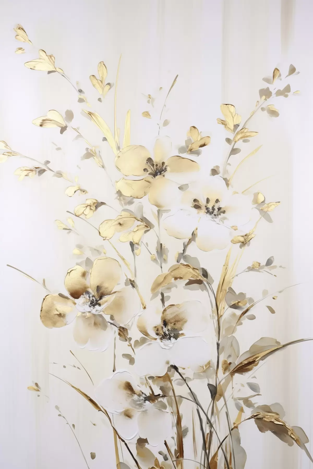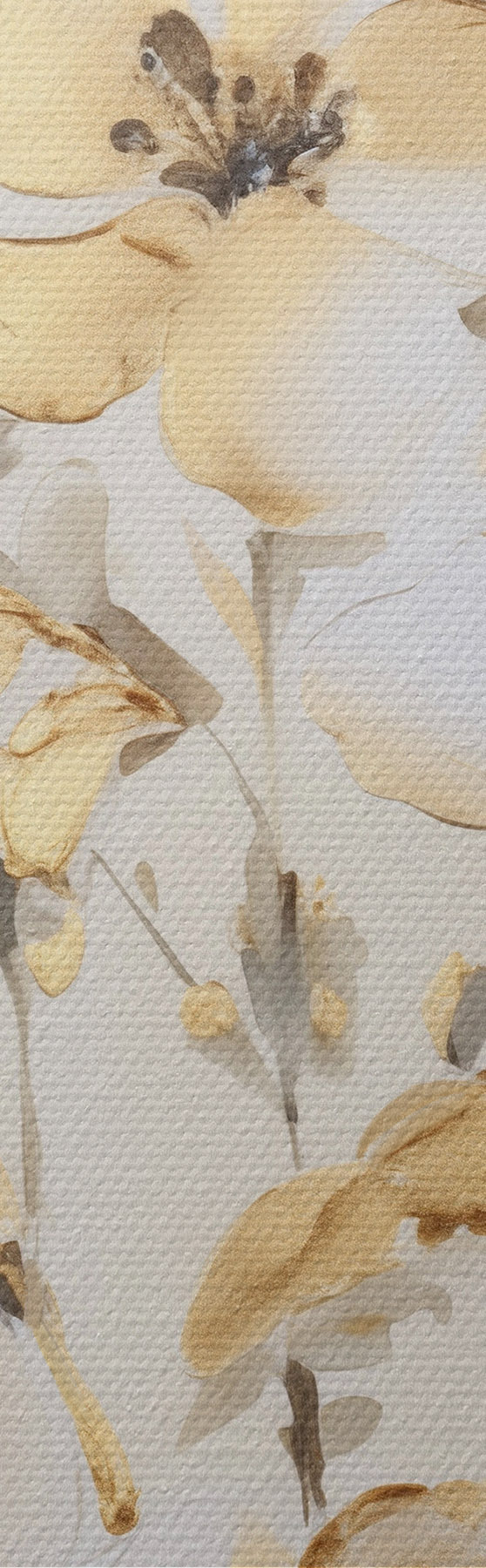 Wandbilder Strukturierte gelbe Blüten und Blätter vor weißem Hintergrund, mit zarten Pinselstrichen s47017