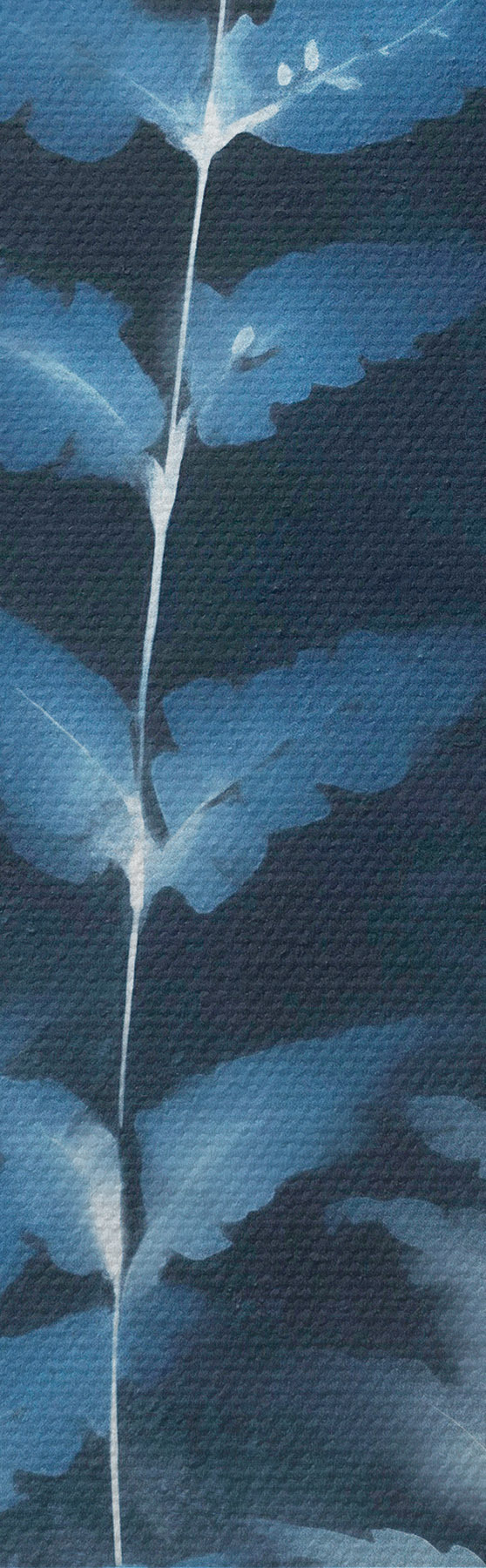 Wandbilder Blaue Farne und Pflanzen vor einem dunklen, strukturierten Hintergrund, mit Fokus auf den komplexen Details, Röntgeneffekt s47027