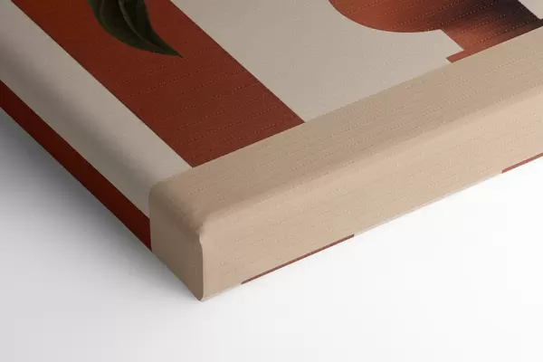 Wandbilder Abstrakte Topfpflanze mit großen grünen und beigen Blättern vor einem cremefarbenen Torbogen mit Terrakotta-Akzenten s47032