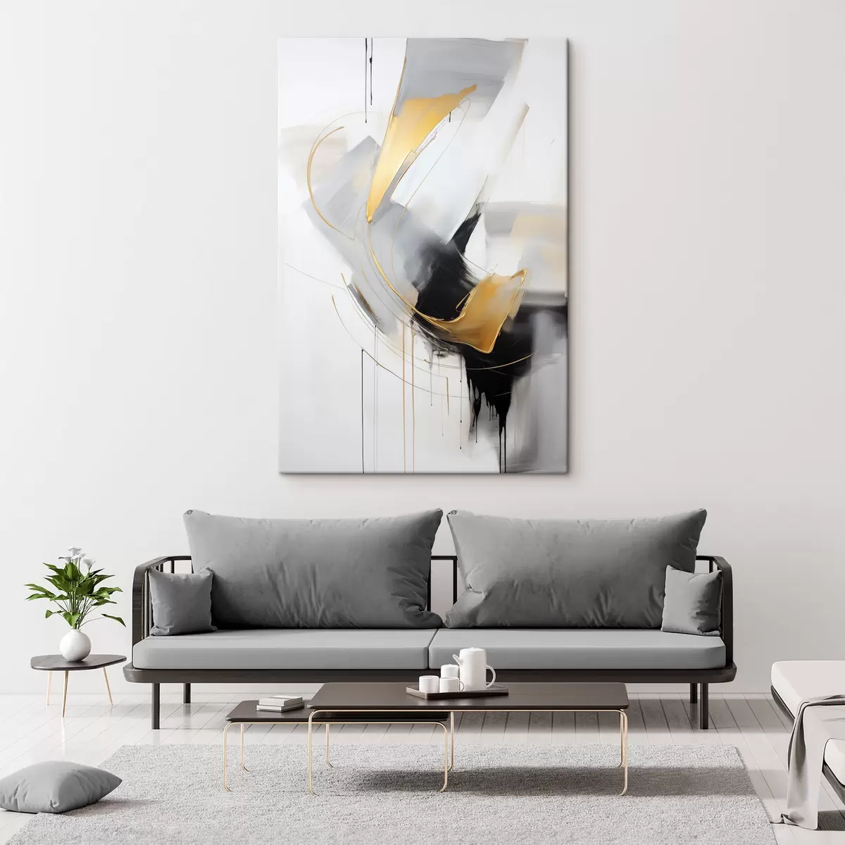 Wandbilder Abstrakte Malerei mit gelben, schwarzen und weißen Pinselstrichen, dynamischen Linien Art. s47034