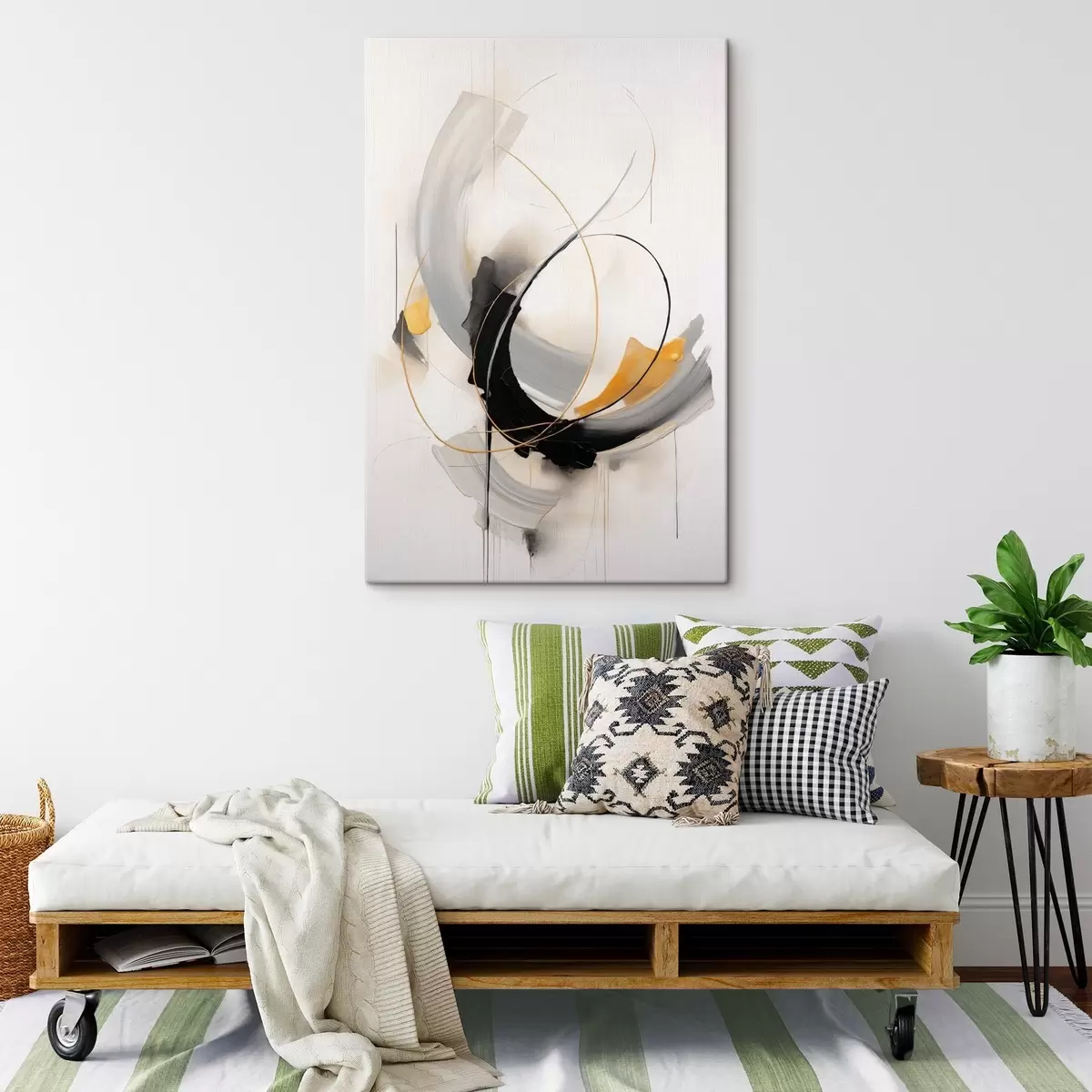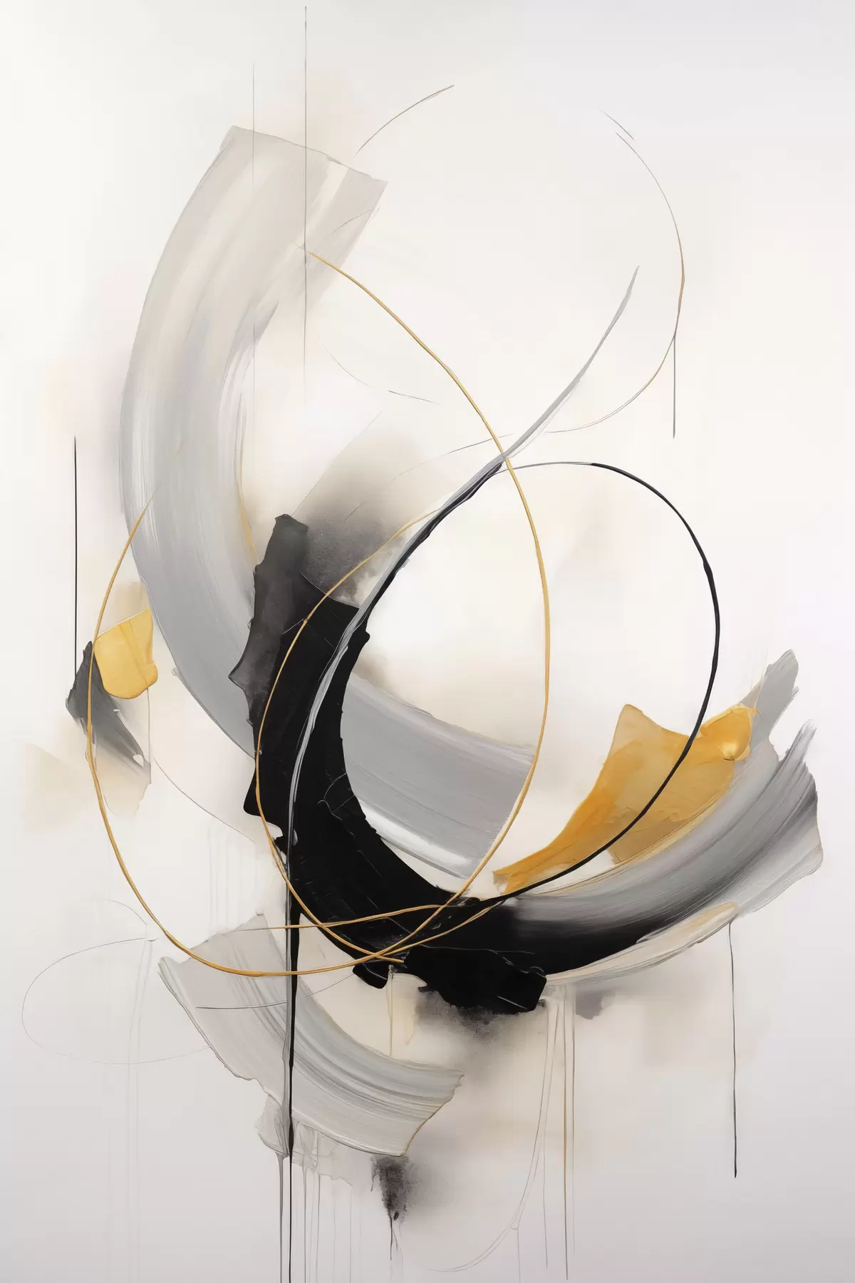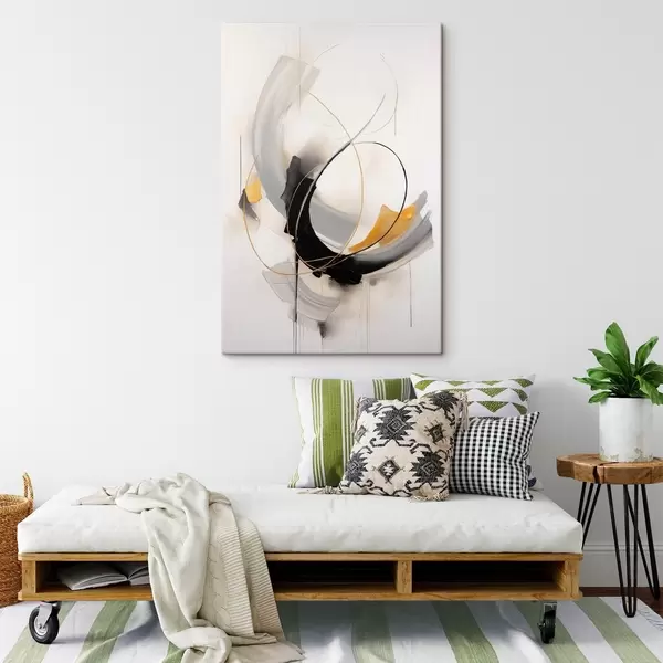 Wandbilder Abstrakte Malerei mit gelben, schwarzen und weißen Pinselstrichen, dynamischen Linien Art. s47035