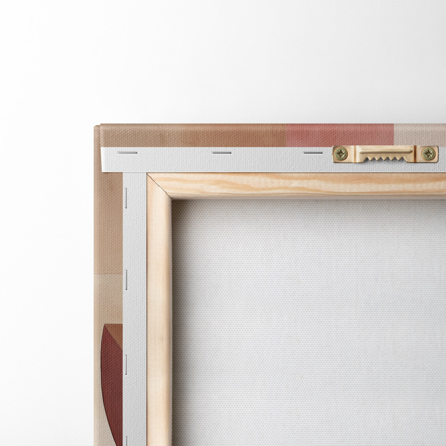Wandbilder Abstrakte Pflanze mit roten Blättern vor einem Hintergrund aus geometrischen Formen und sanften, gedämpften Farben Art. s47041