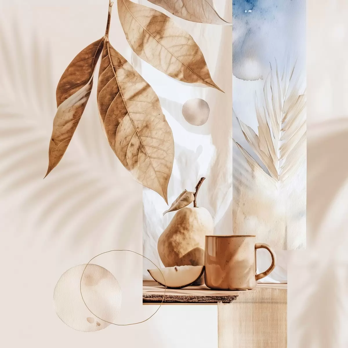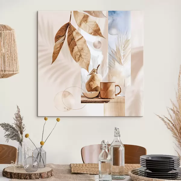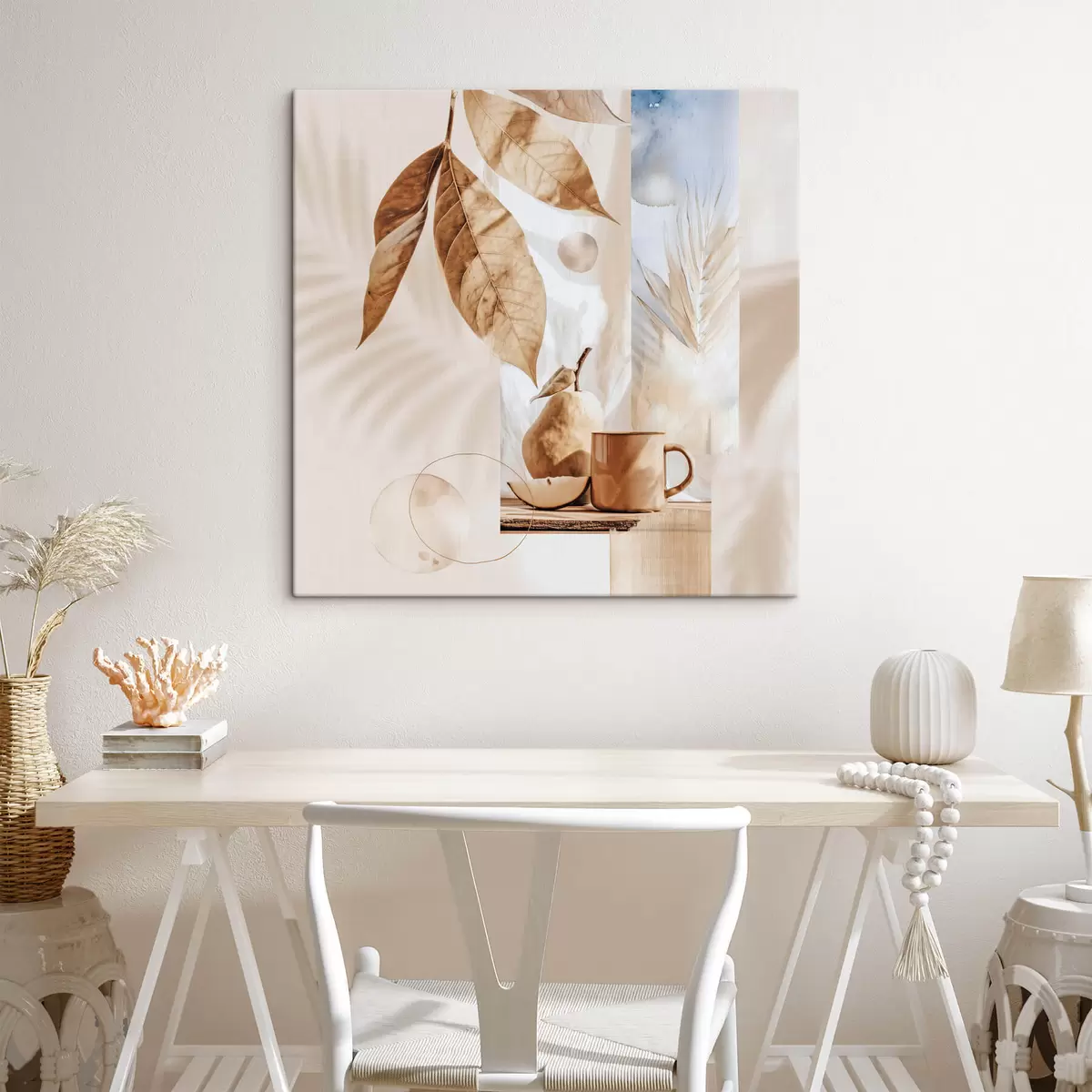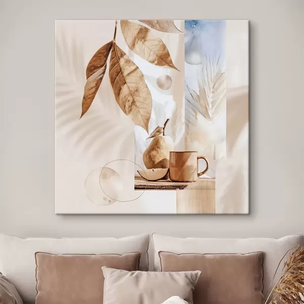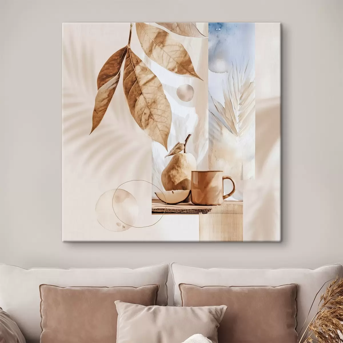 Wandbilder Abstrakt mit Blättern, Birne und Tasse s47047