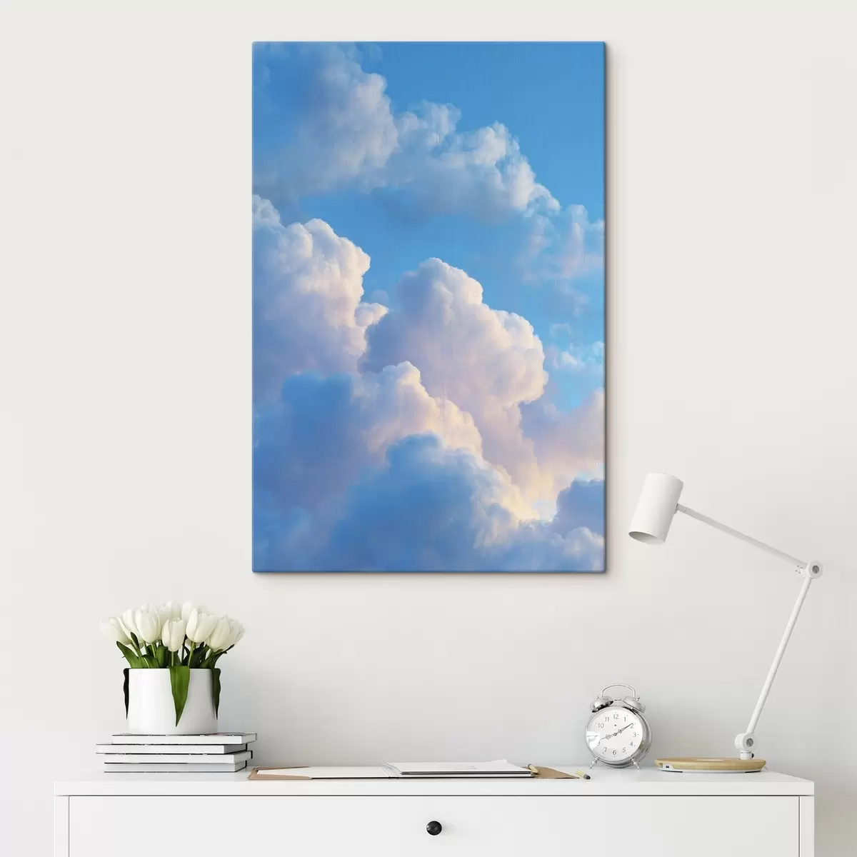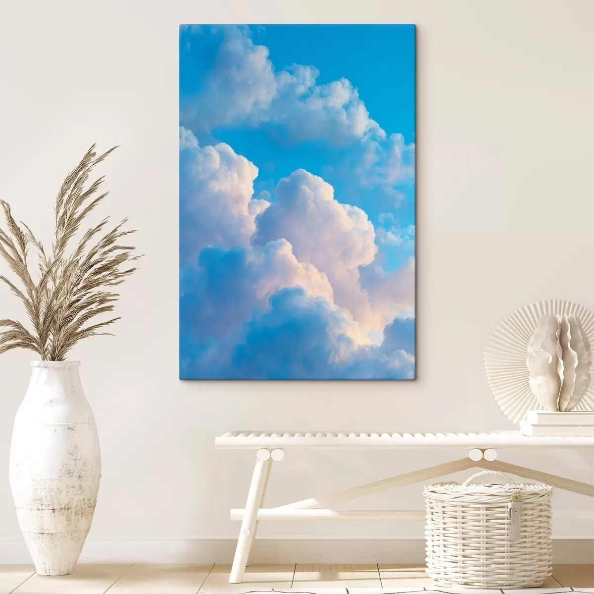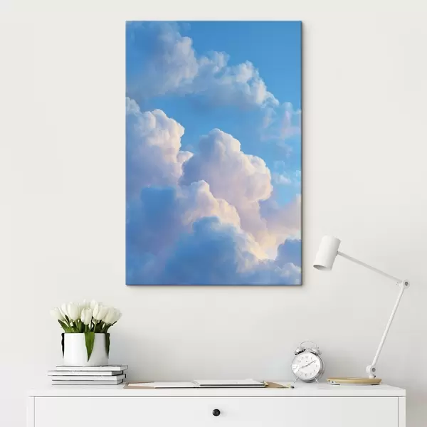 Wandbilder Voluminöse Wolken in sanften Blau- und Rosatönen im fotorealistischen digitalen Grafikstil Art. s47088