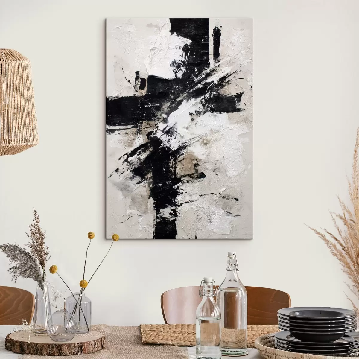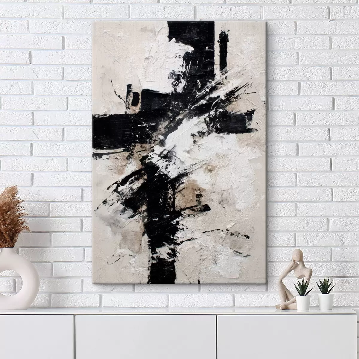 Wandbilder Modernes, abstraktes Interieur mit chaotischen Linien und volumetrischen Pinselstrichen im Stil der Leinwandmalerei Art. s47090