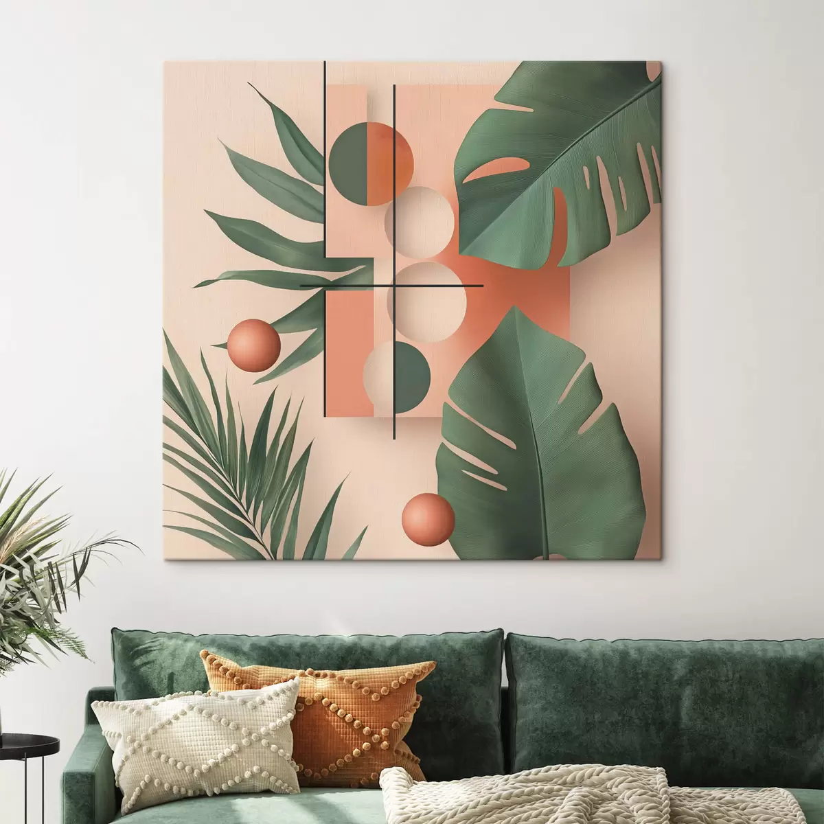 Wandbilder Abstraktion mit großen tropischen Blättern s47099