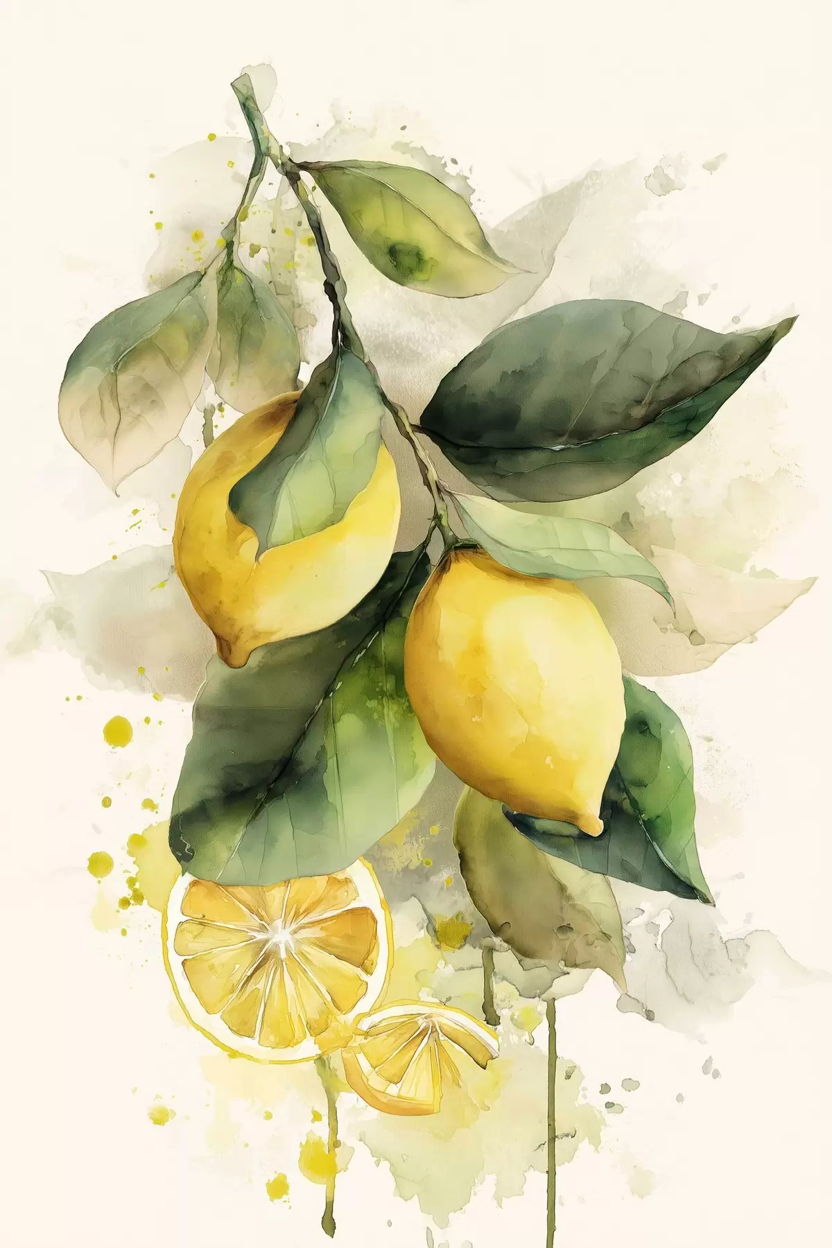 Wandbilder Zweig mit Zitronen im Aquarellstil Art. s47123