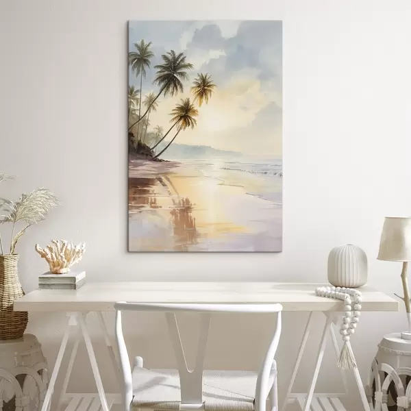 Wandbilder Sonnenuntergang am Strand einer Insel im Aquarellstil Art. s47136