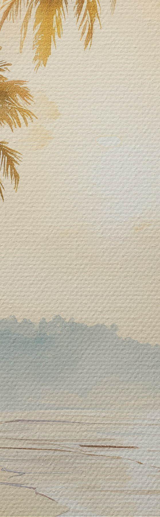 Wandbilder Sonnenuntergang am Strand einer Insel im Aquarellstil s47136