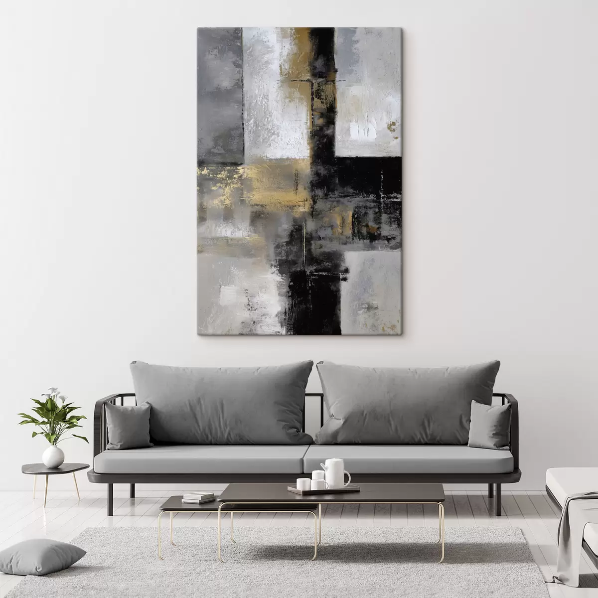 Wandbilder zeitgenössische strukturelle Abstraktion in Schwarz-, Grau- und Weißtönen s47140